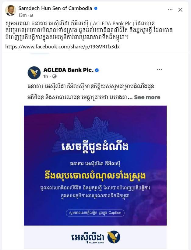 (ភ្នំពេញ)៖ សម្តេចមហាបវរធិបតី ហ៊ុន ម៉ាណែត នាយករដ្ឋមន្ត្រីនៃកម្ពុជា នាថ្ងៃទី០៧ ខែវិច្ឆិកា ឆ្នាំ២០២៥នេះ បានចេញសារលិខិតអបអរសាទរក្នុងឱកាសទិវាជាតិលើកកម្ពស់អនាម័យជនបទ លើកទី១៦