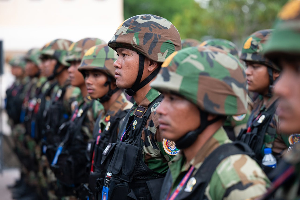 Soldiers of the Royal Cambodian Armed Forces (RCAF) stand ready to defend the kingdom. Supplied