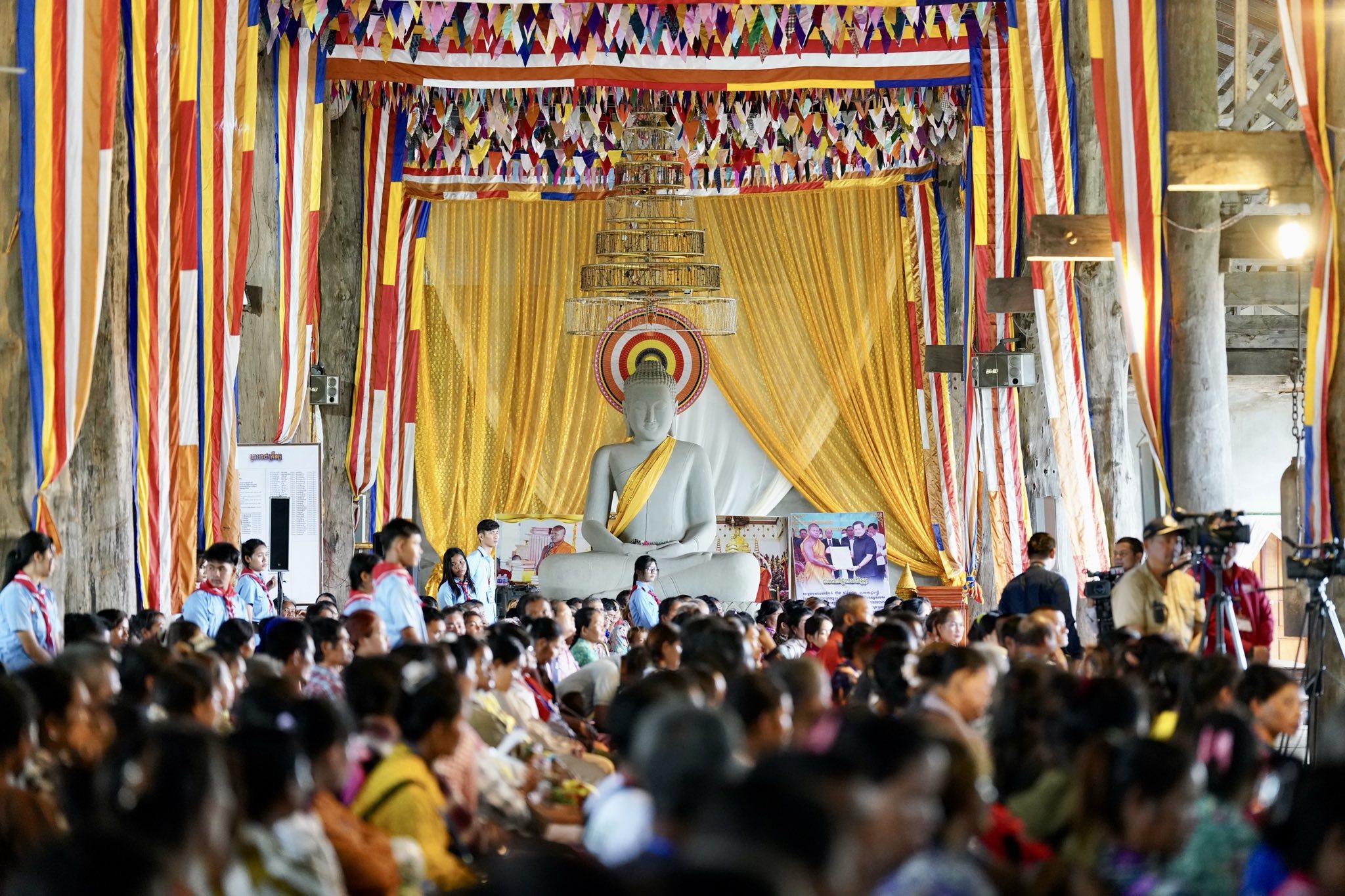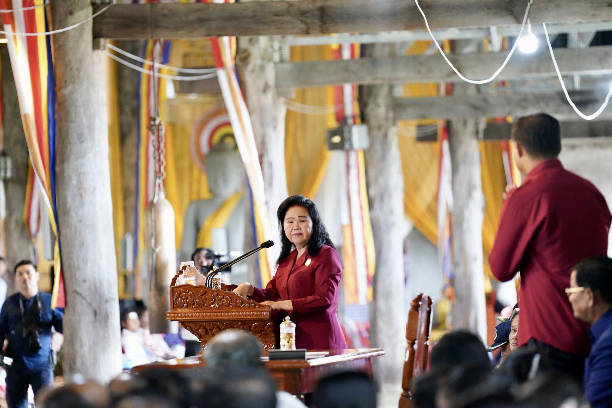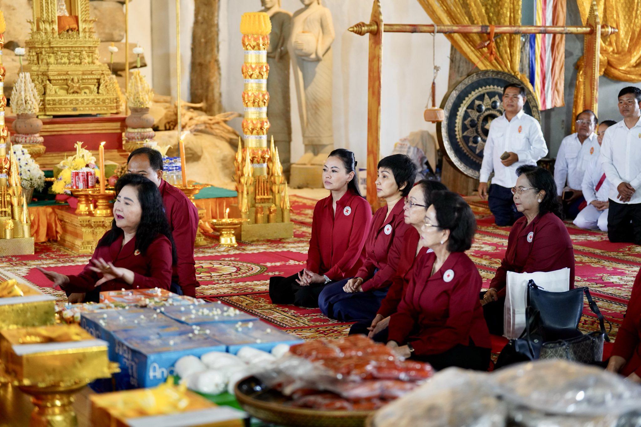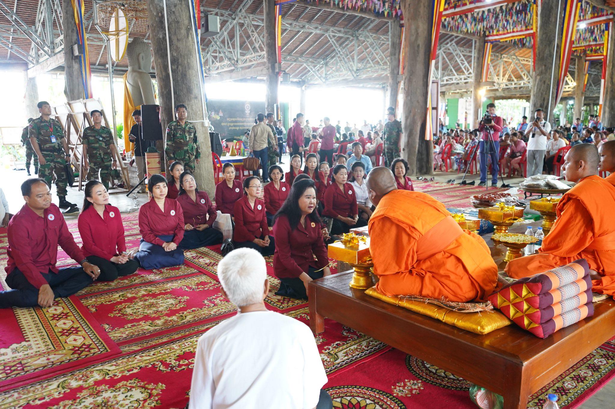 ប្រគេនវត្តពោធិ៍ប្រាំពាន់ដើមរួមមាន៖ អង្ករ ២០០គីឡូក្រាម, មី ១០កេស, ស្ករស ១០គីឡូក្រាម, តែ ៥គីឡូក្រាម, ទឹកក្រូច ១០កេស, ទឹកសុទ្ធ ១០កេស, ត្រីងៀត ១២គីឡូក្រាម, សាច់ក្រក ១២គីឡូក្រាម, ថវិកា ៥លានរៀល។ ប្រគេនបច្ច័យព្រះសង្ឃគង់ក្នុងវត្តពោធិ៍៥ពាន់ដើម ព្រះចៅអធិការ ២លានរៀល និងព្រះសង្ឃ៤អង្គ ១អង្គៗ ១លានរៀល។