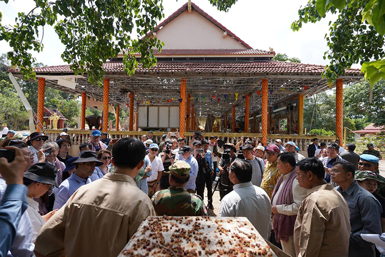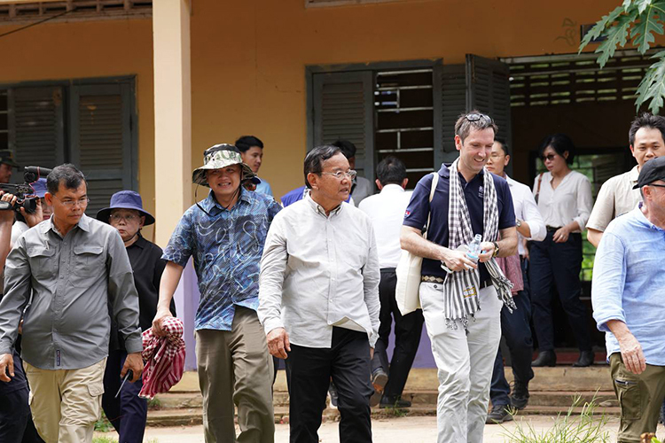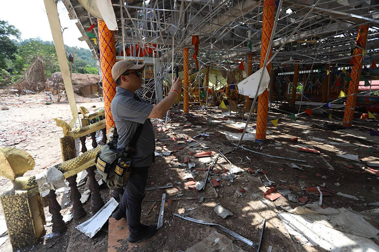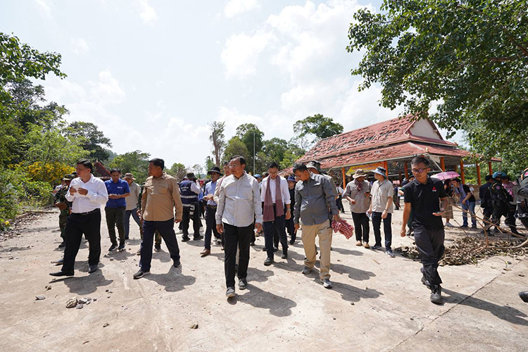 On a historic mission of truth, Deputy Prime Minister and Minister of Foreign Affairs and International Cooperation Prak Sokhonn led a delegation of foreign diplomats to the frontline areas in Oddar Meanchey province, where civilian lives and properties have been shattered by five consecutive days of Thai bombardment. In Banteay Ampil district, the heads of diplomatic missions—including the Ambassadors of China, Japan, the United Kingdom, Australia, Germany, India, Malaysia, and Turkey—witnessed the grim reality on the ground: homes reduced to rubble, schools scarred by explosions, and sacred Buddhist pagodas damaged by Thai air force strikes.