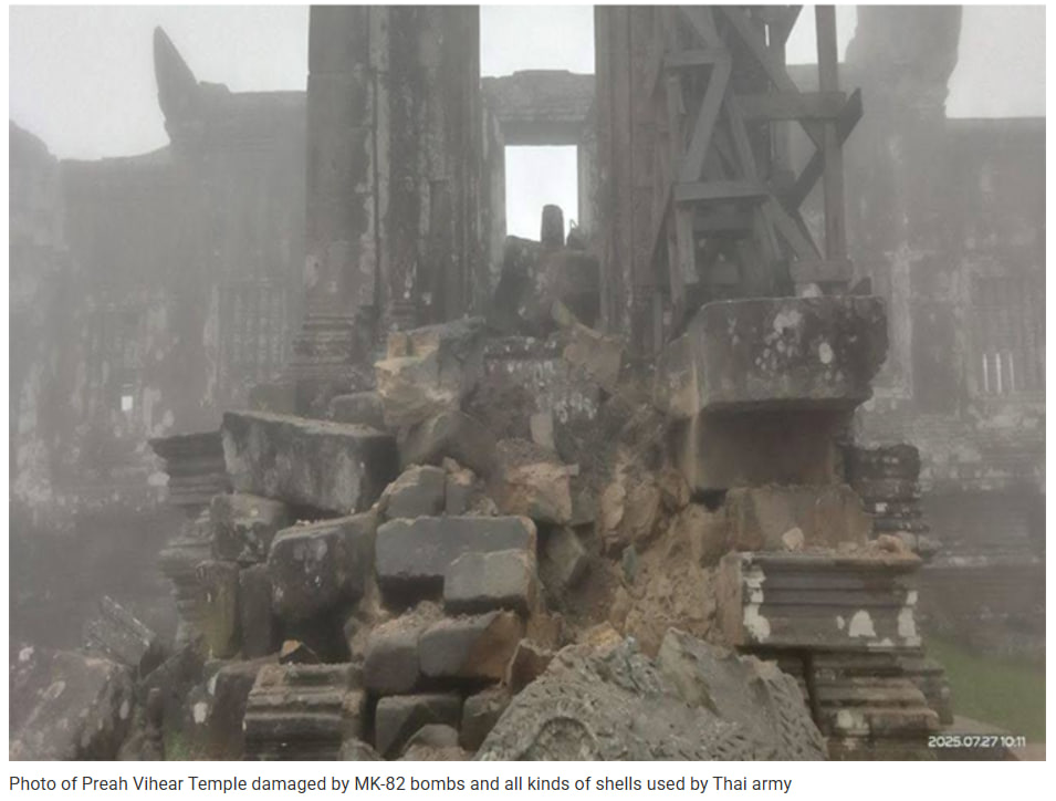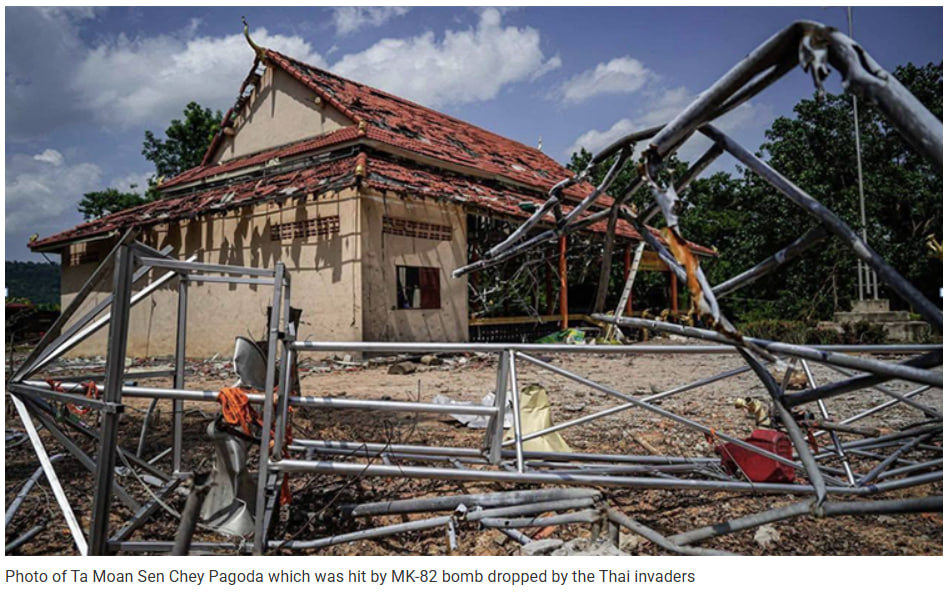 There is no other word to describe Thailand’s actions than invasion: when Thailand attacked the Preah Vihear temple, which the International Court of Justice determined belonged to Cambodia in two separate rulings in 1962 and 2013; when Thailand extended the battlefield from Preah Vihear and Oddar Meanchey provinces to Pursat province; when Thailand used F-16 and Gripen fighter jets to drop massive bombs like the MK-84 and penetrate deep into Cambodian territory; when Thailand continues to use its unilateral map to claim territory and justify its military actions.