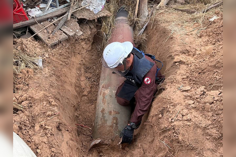 On Monday last week, August 4, specialists from CMAC, as well as international demining and ordnance removal agencies Golden West and NPA (Norwegian People’s Aid) visited and assessed one of the unexploded MK-84s.