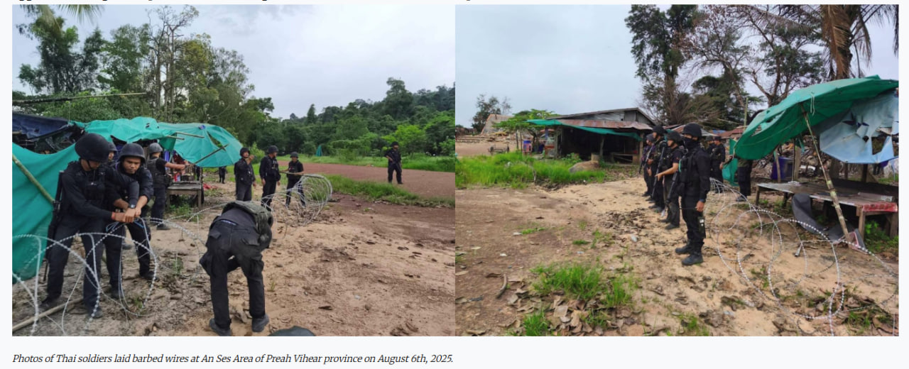 By contrast, the Thai side has continuously and blatantly demonstrated its intent to undermine this agreement through the use of covert aggressive tactics, such as deploying troops to intrude into Cambodian territory and laying barbed wires, constructing roads within Cambodia’s sovereign territory and territorial integrity, as well as firing slingshots instead of using weapons at Cambodian troops. Such actions by the Thai military amount to a silent aggression designed to provoke and sabotage the ceasefire should Cambodia’s patience be exhausted.