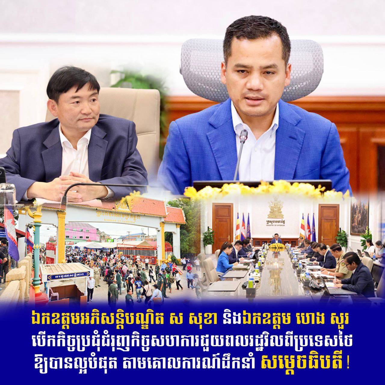 ឯកឧត្តមអភិសន្តិបណ្ឌិត ស សុខា និងឯកឧត្តម ហេង សួរ បើកកិច្ចប្រជុំ ជំរុញកិច្ចសហការ ជួយពលរដ្ឋវិលពីប្រទេសថៃ ឱ្យបានល្អបំផុត តាមគោលការណ៍ដឹកនាំរបស់សម្តេចមហាបវរធិបតី ហ៊ុន ម៉ាណែត នាយករដ្ឋមន្ត្រី នៃព្រះរាជាណាចក្រកម្ពុជា!
