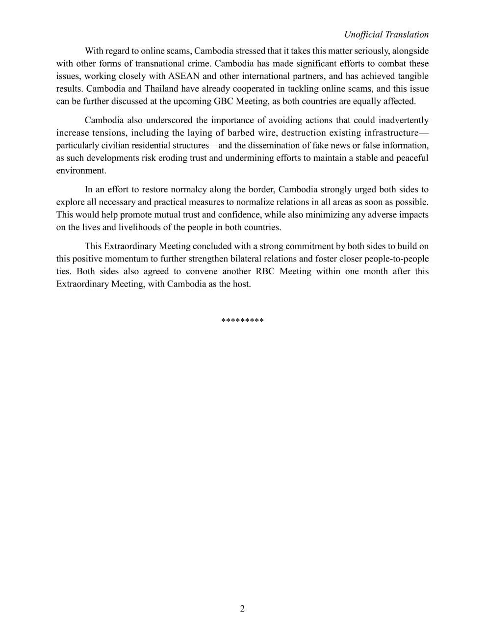 The Outcomes of the Cambodia-Thailand Extraordinary Regional Border Committee (RBC) Meeting on 16 August 2025, Trat Province, Kingdom of Thailand