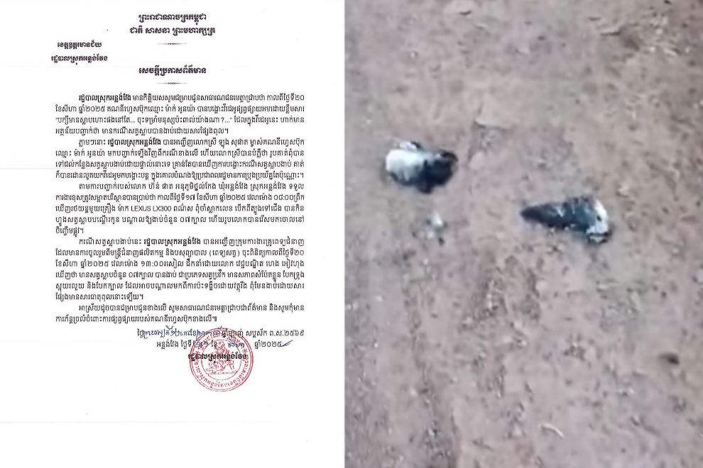 “To make matters clear, the Anlong Veng district administration invited a team of veterinary specialists to inspect the site on August 20 at 1pm,” said a statement from the district administration.