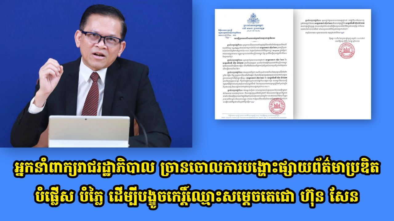 អ្នកនាំពាក្យរាជរដ្ឋាភិបាល ច្រានចោលការបង្ហោះផ្សាយព័ត៌មានប្រឌិត បំផ្លើស បំភ្លៃ ដើម្បីបង្ខូចកេរ្តិ៍ឈ្មោះសម្តេចតេជោ ហ៊ុន សែន