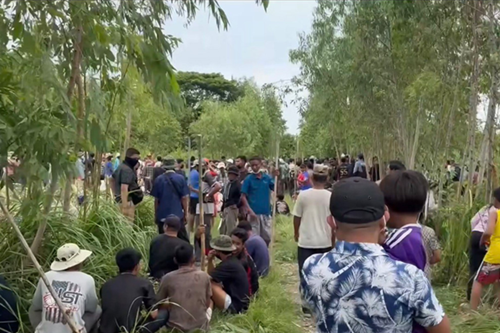 Cambodian villagers in O Bei Choan commune protest against Thai soldiers who attempted to lay razor wire in Chok Chey village on September 4. FB