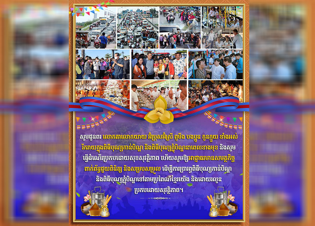 សម្តេចធិបតីនាយករដ្ឋមន្រ្តីបានលើកឡើងទៀតថា សូមឱ្យអាជ្ញាធរមានសមត្ថកិច្ចលំដាប់ថ្នាក់ រាជធានី-ខេត្ត និងមូលដ្ឋានដែលពាក់ព័ន្ធ ពិសេសគណៈកម្មាធិការរៀបចំពិធីបុណ្យនៅតាមទីវត្តអារាមទាំងអស់ សហការរៀបចំឱ្យពិធីបុណ្យឱ្យបានល្អប្រសើរ ធានាសុខសុវត្ថិភាព និងបរិយាកាសសប្បាយរីករាយក្នុងការធ្វើបុណ្យ និងប្រតិបត្តិសាសនាតាមប្រពៃណីដោយរលូនជូនដល់ប្រជាពលរដ្ឋពុទ្ធបរិស័ទ្ធគ្រប់ទិសទី។ រីករាយពិធីកាន់បិណ្ឌ និងភ្ជុំបិណ្ឌប្រពៃណីជាតិខ្មែរ៕