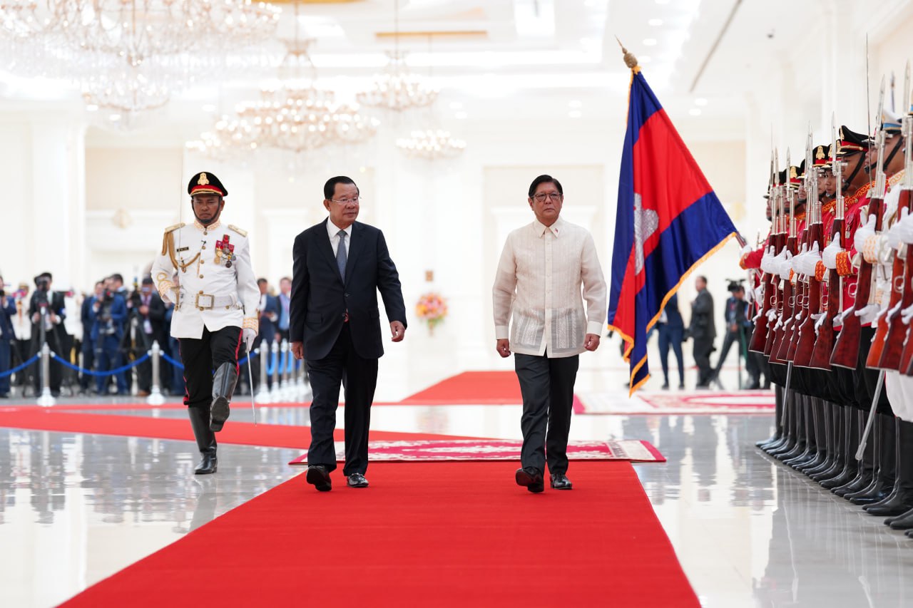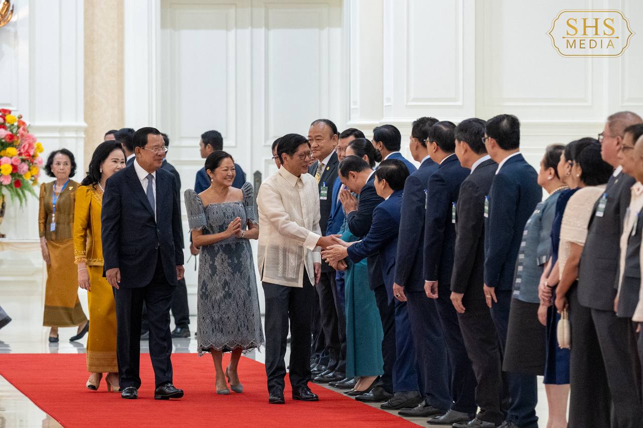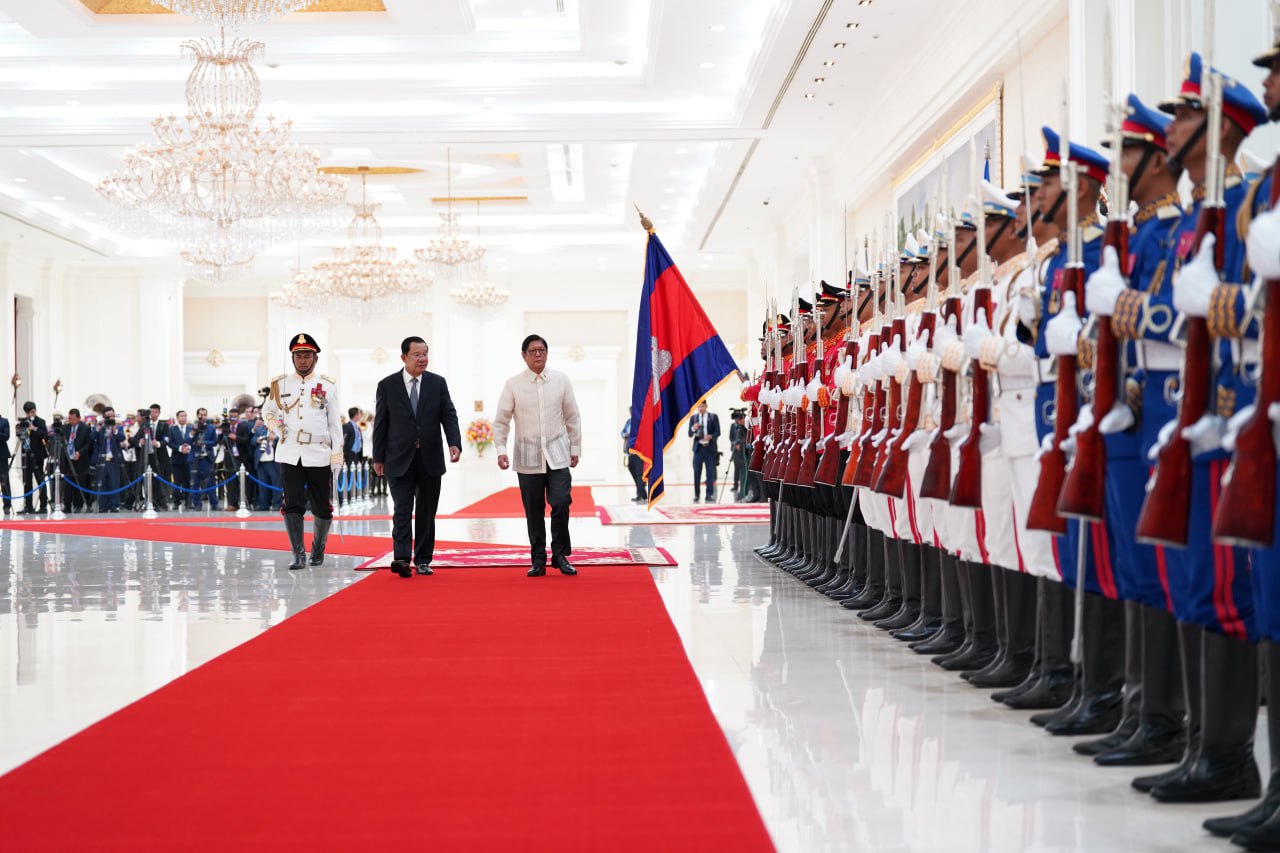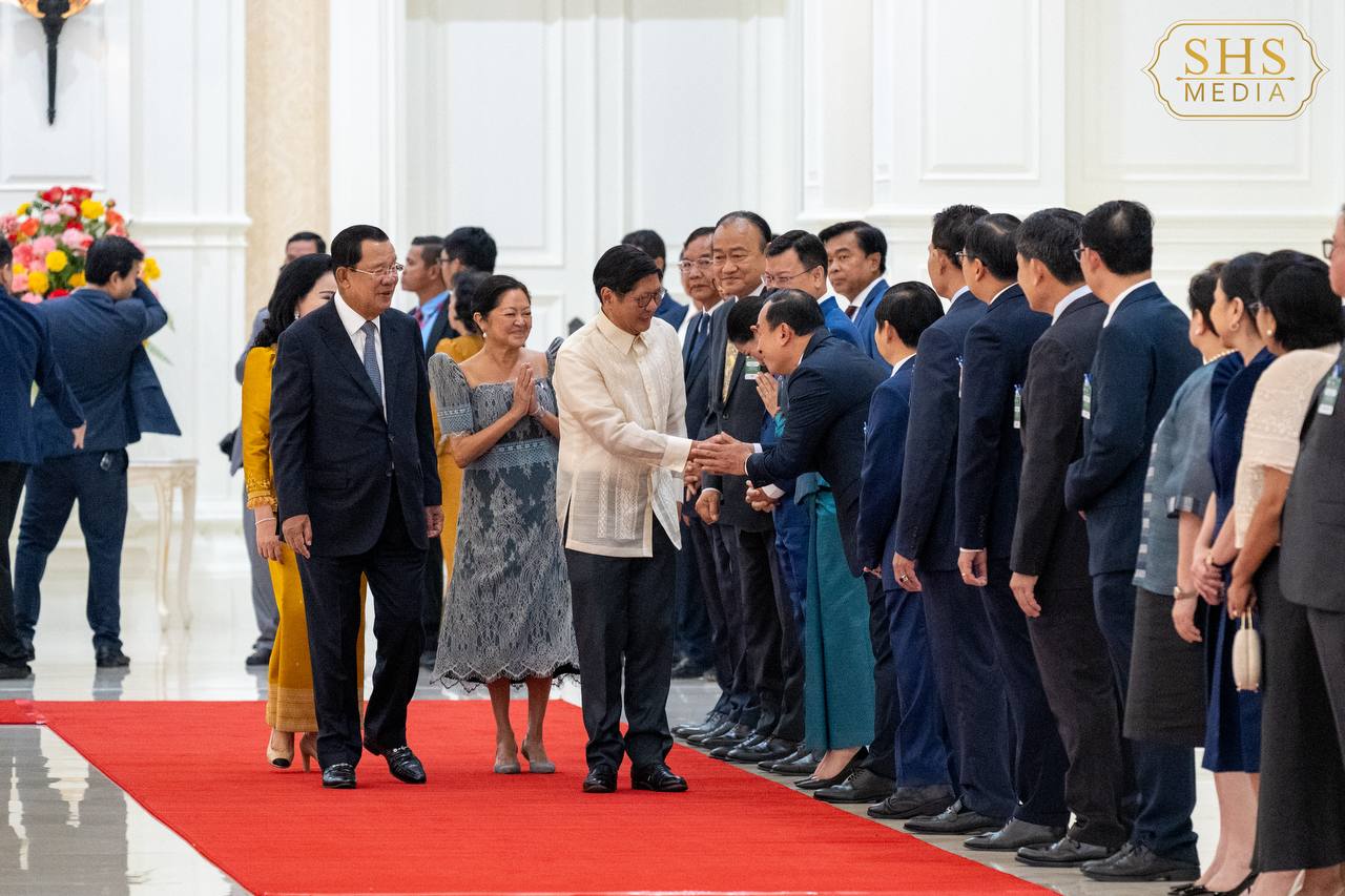 នៅវិមានសន្តិភាព រាជធានីភ្នំពេញ នាព្រឹកថ្ងៃចន្ទ ១រោច ខែភទ្របទ ឆ្នាំម្សាញ់ សប្តស័ក ពុទ្ធសករាជ ២៥៦៩ ត្រូវនឹងថ្ងៃទី៨ ខែកញ្ញា ឆ្នាំ២០២៥ នេះ សម្តេចអគ្គមហាសេនាបតីតេជោ ហ៊ុន សែន ប្រមុខរដ្ឋស្តីទីនៃព្រះរាជាណាចក្រកម្ពុជា និងសម្តេចកិត្តិព្រឹទ្ធបណ្ឌិត ប៊ុន រ៉ានី ហ៊ុនសែន បានអញ្ជើញទទួលបដិសណ្ឋារកិច្ចស្វាគមន៍ នូវដំណើរបំពេញទស្សនកិច្ចផ្លូវរដ្ឋ របស់ ឯកឧត្តម Ferdinand Romualdez Marcos Jr. ប្រធានាធិបតីនៃសាធារណរដ្ឋហ្វីលីពីន និងលោកជំទាវ Louise Araneta-Marcos ក្នុងឱកាសដែល ឯកឧត្តម និងលោកជំទាវ អញ្ជើញបំពេញទស្សនកិច្ចផ្លូវរដ្ឋរយៈពេល៣ថ្ងៃ គឺចាប់ពីថ្ងៃទី៧ ដល់ទី ៩ ខែកញ្ញា ២០២៥ នៅព្រះរាជាណាចក្រកម្ពុជា។