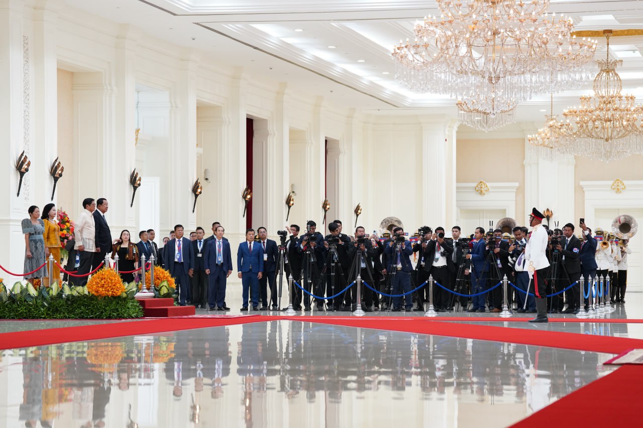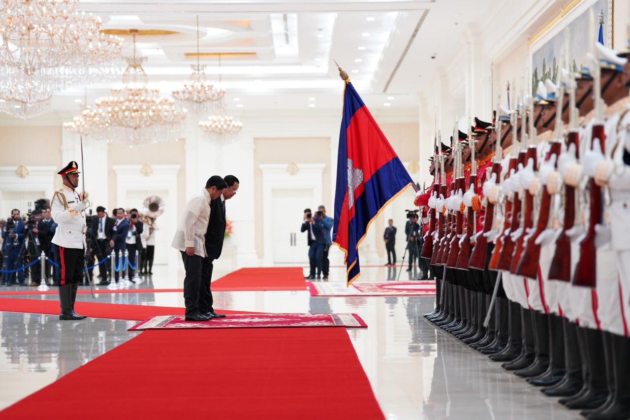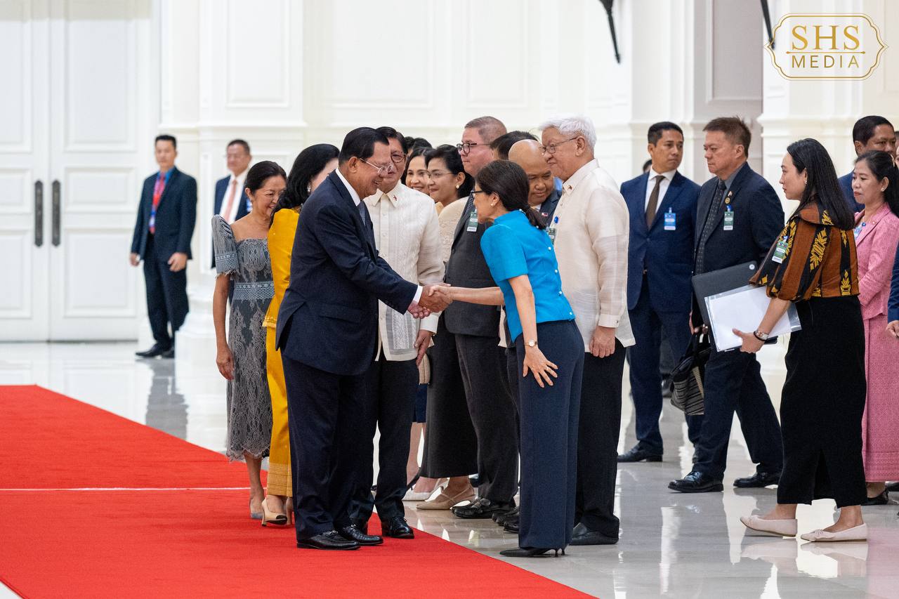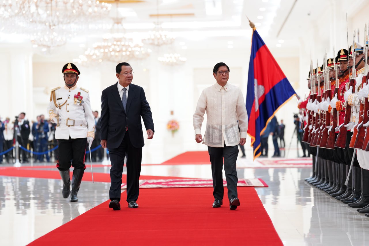 នៅវិមានសន្តិភាព រាជធានីភ្នំពេញ នាព្រឹកថ្ងៃចន្ទ ១រោច ខែភទ្របទ ឆ្នាំម្សាញ់ សប្តស័ក ពុទ្ធសករាជ ២៥៦៩ ត្រូវនឹងថ្ងៃទី៨ ខែកញ្ញា ឆ្នាំ២០២៥ នេះ សម្តេចអគ្គមហាសេនាបតីតេជោ ហ៊ុន សែន ប្រមុខរដ្ឋស្តីទីនៃព្រះរាជាណាចក្រកម្ពុជា និងសម្តេចកិត្តិព្រឹទ្ធបណ្ឌិត ប៊ុន រ៉ានី ហ៊ុនសែន បានអញ្ជើញទទួលបដិសណ្ឋារកិច្ចស្វាគមន៍ នូវដំណើរបំពេញទស្សនកិច្ចផ្លូវរដ្ឋ របស់ ឯកឧត្តម Ferdinand Romualdez Marcos Jr. ប្រធានាធិបតីនៃសាធារណរដ្ឋហ្វីលីពីន និងលោកជំទាវ Louise Araneta-Marcos ក្នុងឱកាសដែល ឯកឧត្តម និងលោកជំទាវ អញ្ជើញបំពេញទស្សនកិច្ចផ្លូវរដ្ឋរយៈពេល៣ថ្ងៃ គឺចាប់ពីថ្ងៃទី៧ ដល់ទី ៩ ខែកញ្ញា ២០២៥ នៅព្រះរាជាណាចក្រកម្ពុជា។