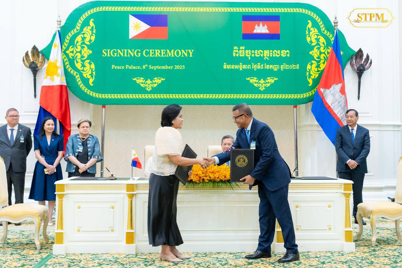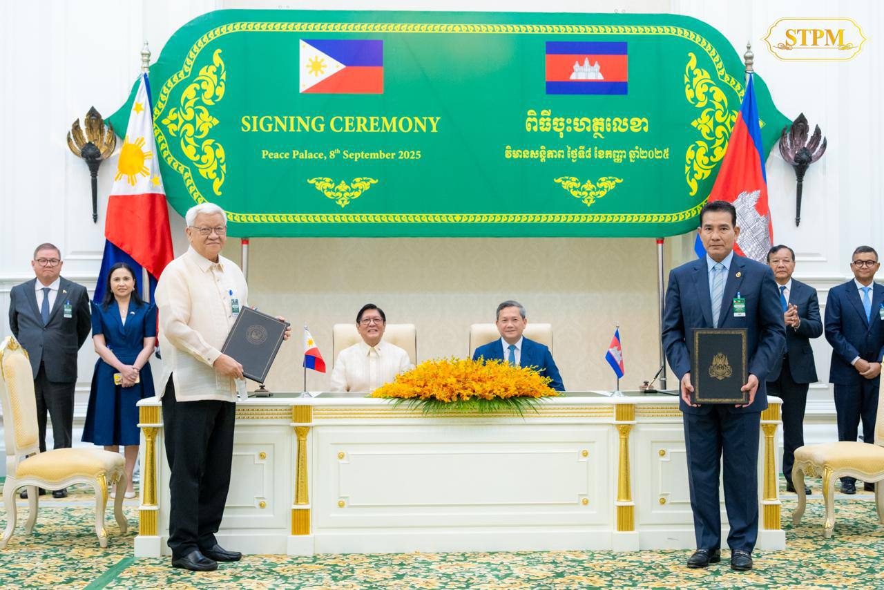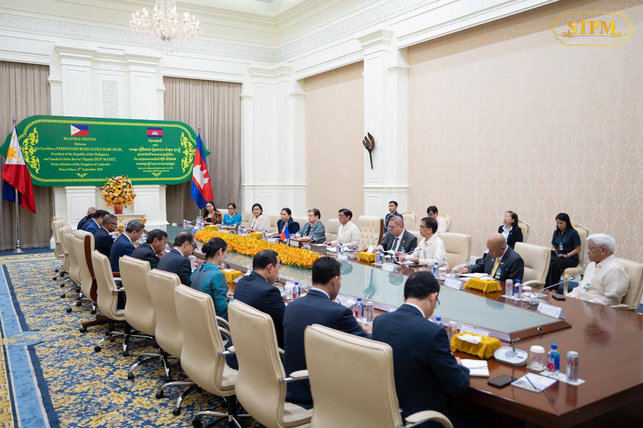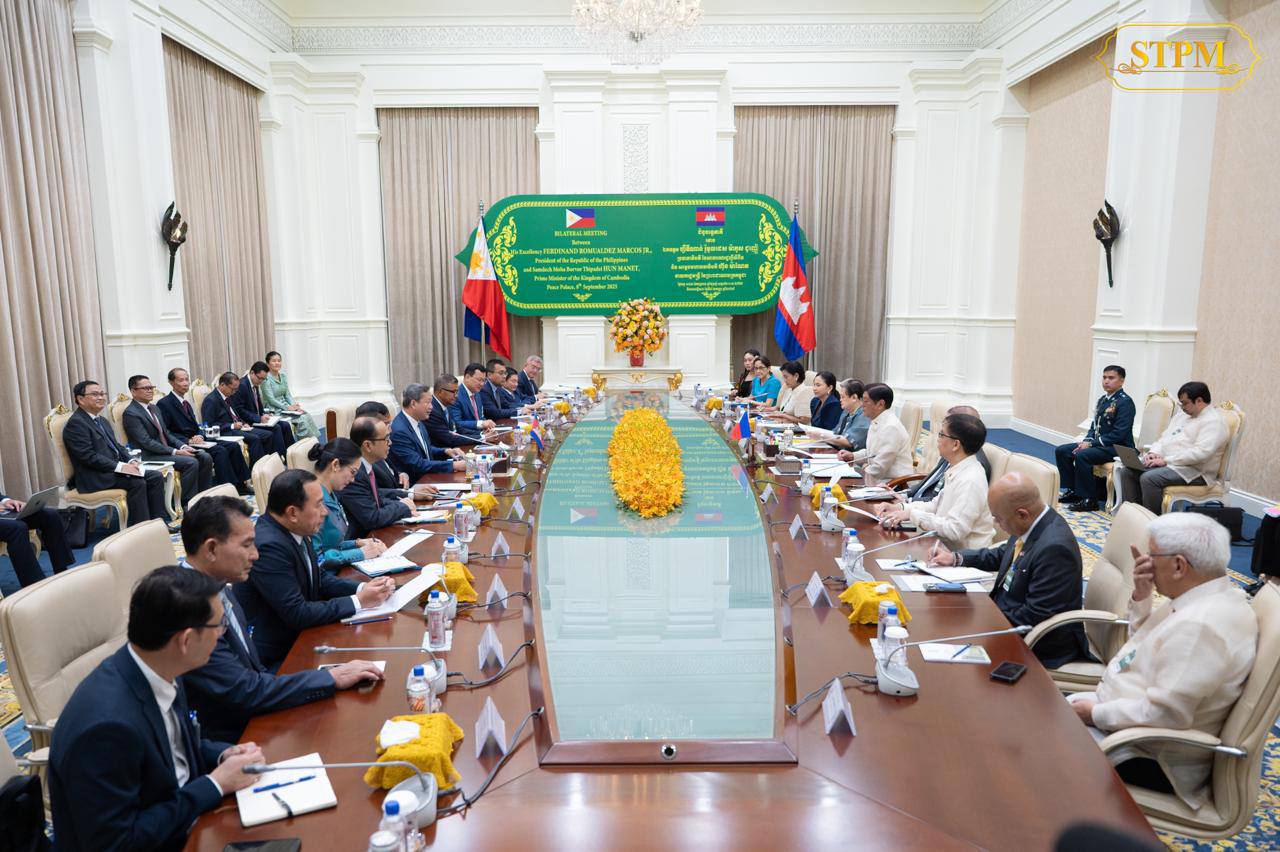 On the morning of 8 September 2025, at the Peace Palace, Samdech Moha Borvor Thipadei Hun Manet, Prime Minister of the Kingdom of Cambodia, held a bilateral meeting with His Excellency Ferdinand Romualdez Marcos Jr., President of the Republic of the Philippines, and his high-level delegation during their state visit to the Kingdom of Cambodia from 7 to 9 September 2025.