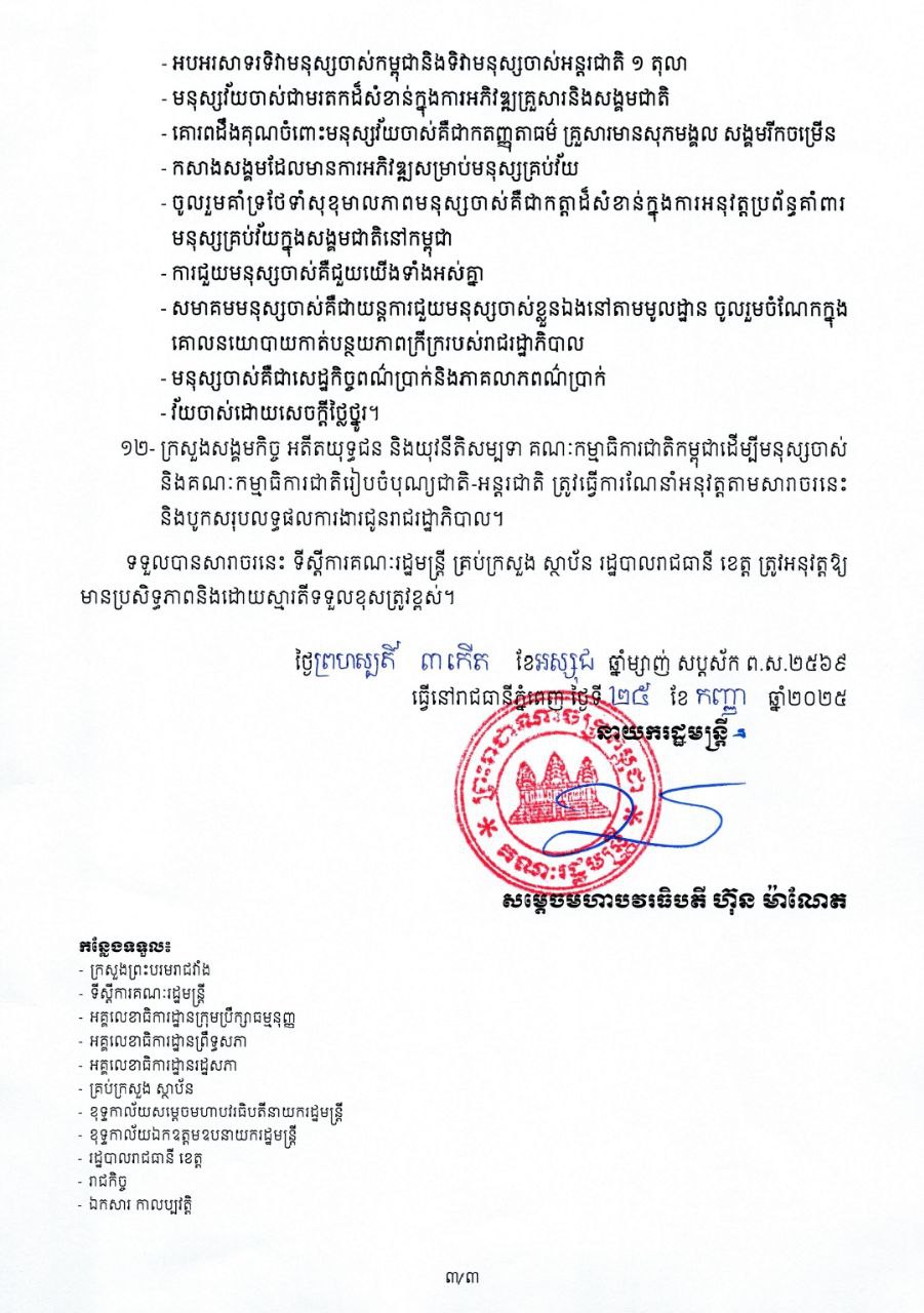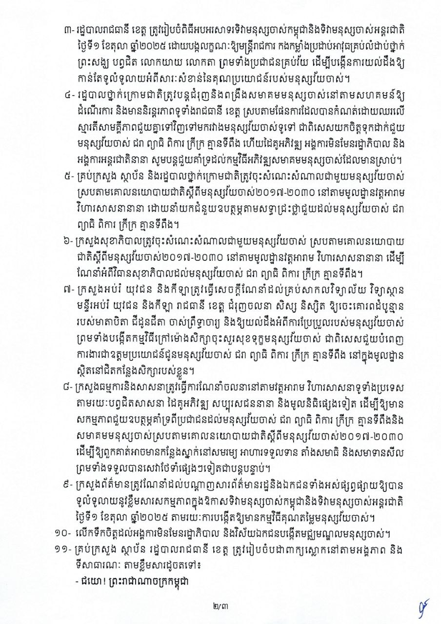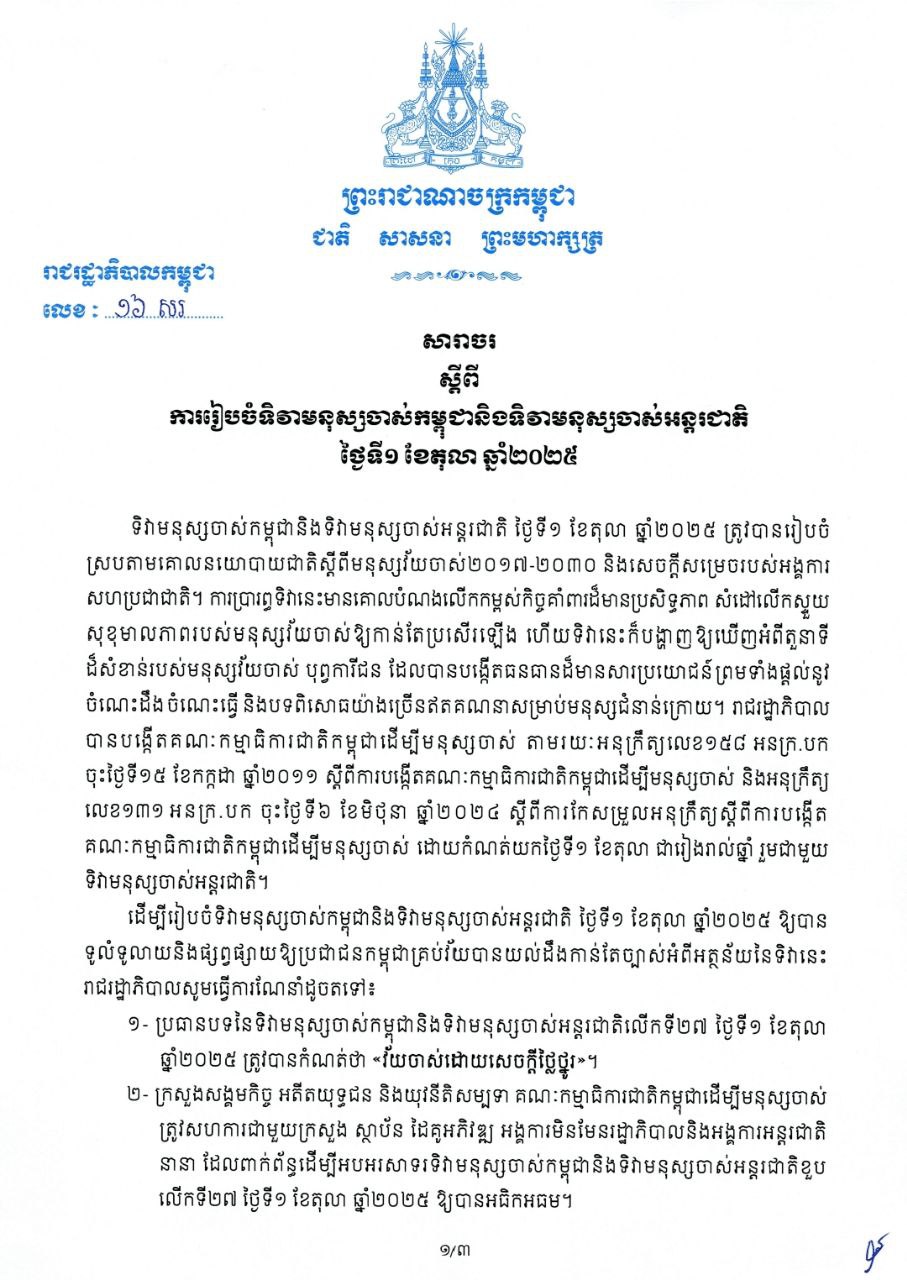សារាចរ ស្តីពី ការរៀបចំទិវាមនុស្សចាស់កម្ពុជានិងទិវាមនុស្សចាស់អន្តរជាតិ ថ្ងៃទី១ ខែតុលា ឆ្នាំ២០២៥