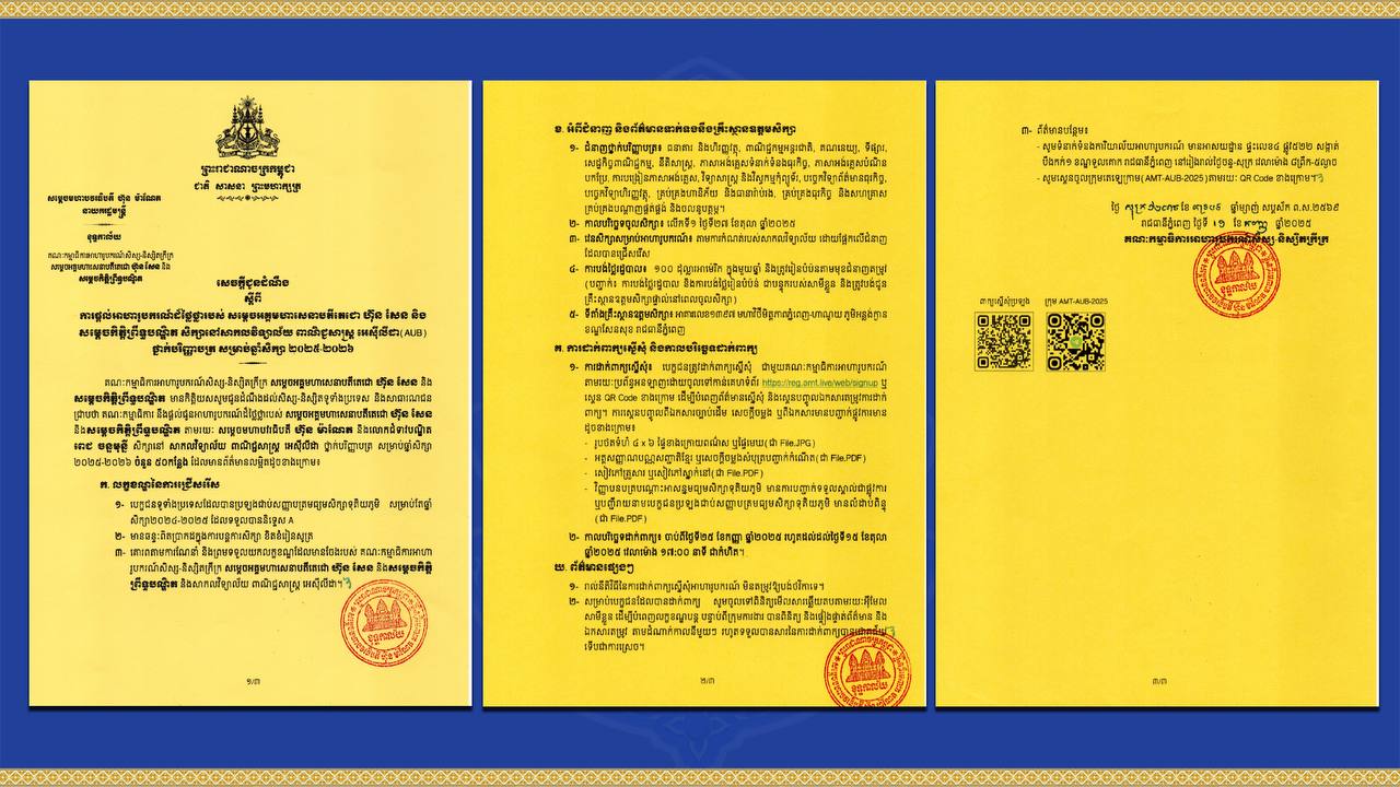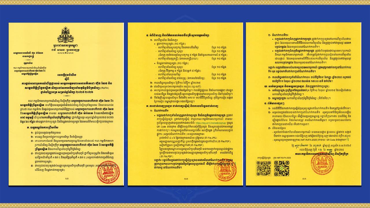 ៤. សាកលវិទ្យាល័យភូមិន្ទវិចិត្រសិល្បៈ(RUFA) ថ្នាក់បរិញ្ញាបត្រ សម្រាប់ឆ្នាំសិក្សា ២០២៥-២០២៦ ចំនួន ៦០ កន្លែង ដោយឆ្លងកាត់ការប្រឡង និងមិនឆ្លងកាត់ការប្រឡង។ កាលបរិច្ឆេទទទួលពាក្យ៖ ចាប់ពីថ្ងៃជូនដំណឹងនេះ រហូតដល់ថ្ងៃទី១១ ខែតុលា ឆ្នាំ២០២៥ វេលាម៉ោង ១៧:០០ នាទី ជាកំហិត។ ព័ត៌មានបន្ថែម: https://t.me/+_LUuPTe43ZQyYjQ9