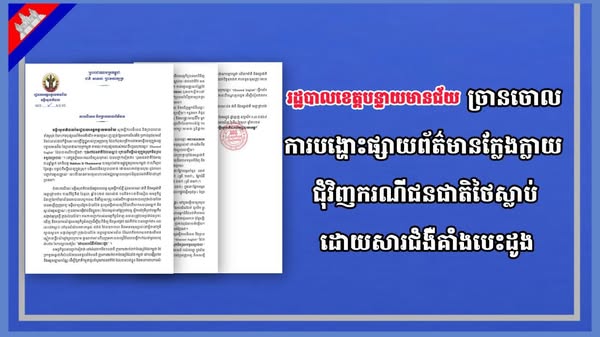 រដ្ឋបាលខេត្តបន្ទាយមានជ័យច្រានចោលការបង្ហោះផ្សាយព័ត៌មានក្លែងក្លាយ ជុំវិញករណីជនជាតិថៃស្លាប់ដោយសារជំងឺគាំងបេះដូង