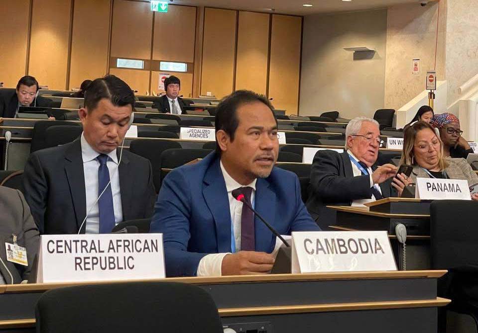 Photo [ Cambodia’s Permanent Representative to the UN in Geneva, Ambassador In Dara speaks at an event. Permanent Mission of the Kingdom of Cambodia to the UN Office at Geneva]