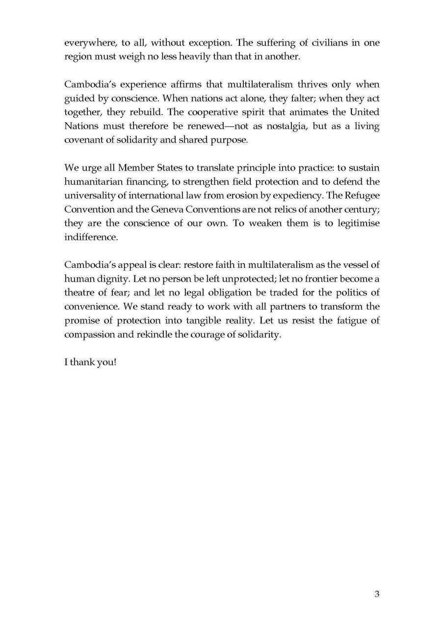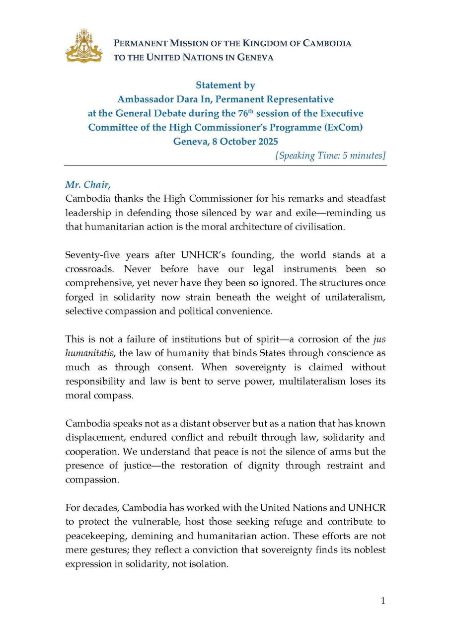 Statement by Ambassador Dara In, Permanent Representative at the General Debate during the 76th session of the Executive Committee of the High Commissioner’s Programme (ExCom)
