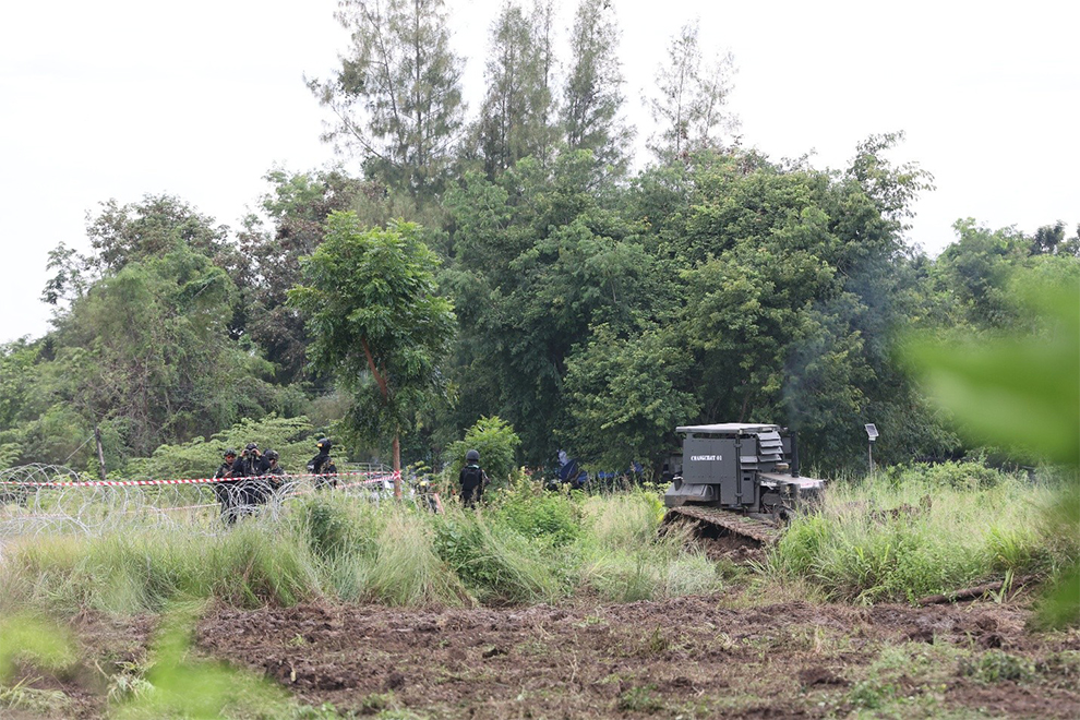 Photo: A Thai armoured bulldozer ploughs a Cambodian field in Banteaty Meanchety province on October 10. Supplied