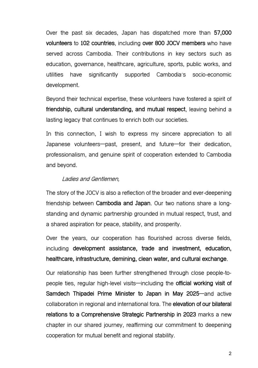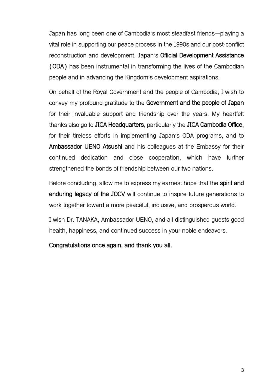 Congratulatory Remarks by His Excellency PRAK Sokhonn, Deputy Prime Minister, at the 60th Anniversary Ceremony of the Japan Overseas Cooperation Volunteers