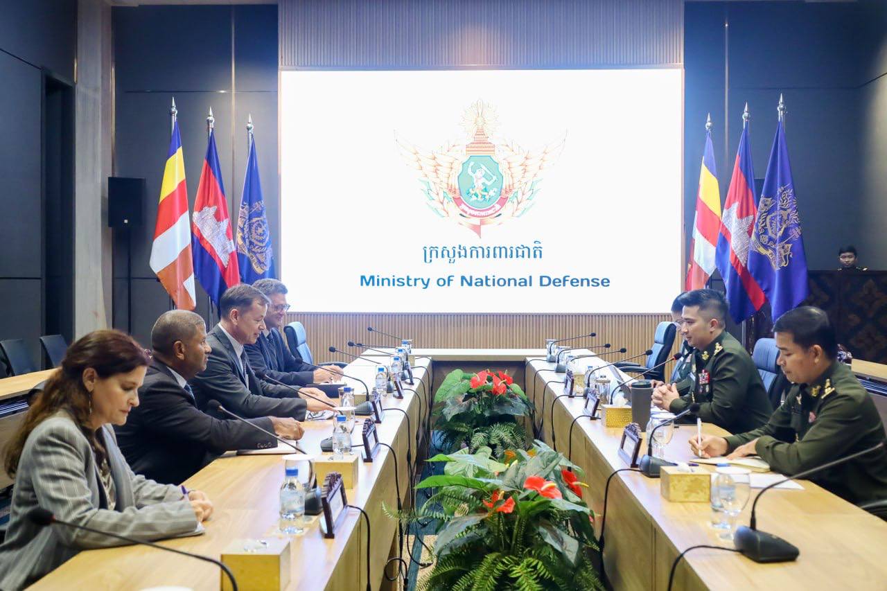 (Phnom Penh) With the permission of His Excellency General Tea Seiha, Deputy Prime Minister and Minister of National Defense, H.E. LTG Rath Dararath, Secretary of State of the Ministry of National Defense and Chairman of the Command Post Information (CPI) of the Ministry of National Defense received a courtesy call and held working discussions with the Delegation of the International Committee of the Red Cross (ICRC), led by Mr. Jürg Montani, Head of the Regional Delegation of the International Committee of the Red Cross (ICRC).