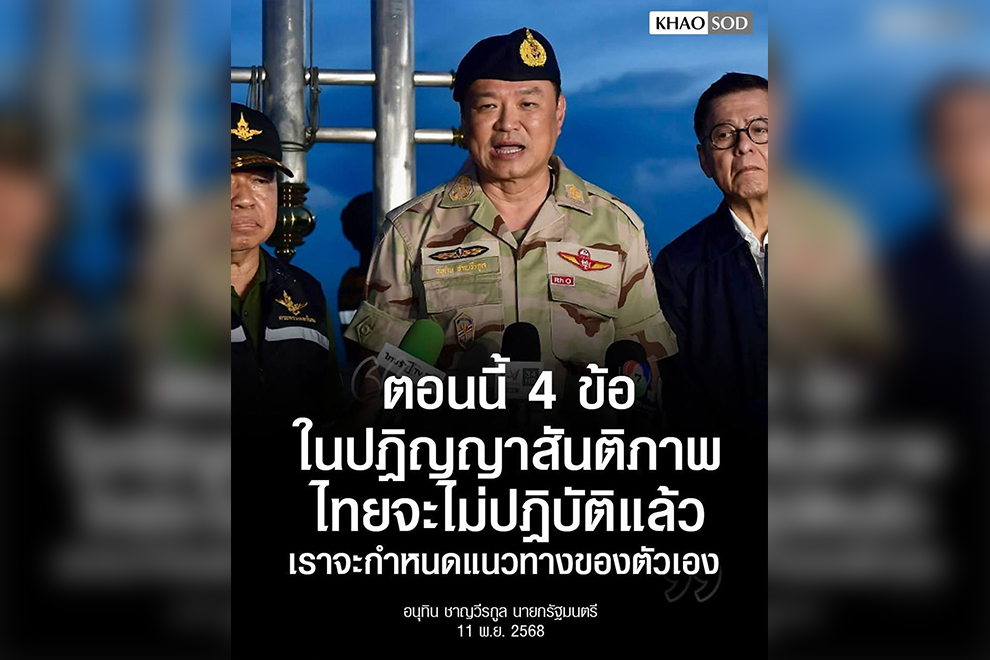 When a Leader Turns His Back on Peace [Thai Prime Minister Anutin Charnvirakul has called for Thailand to break from the October 26 peace agreement, saying ‘We will follow our own path’. Khaosod]