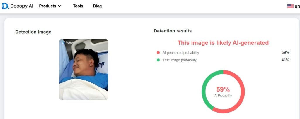A check via the Decopy AI tool, detects a 59% chance that The Nation image has been generated by AI.