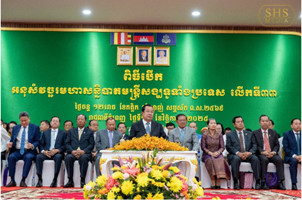 រូបភាពតេជោហ៊ុន សែន នៅក្នុងពិធីបើកអនុសំវច្ឆរមហាសន្និបាតមន្ត្រីសង្ឃទូទាំងប្រទេសលើកទី៣៣ នៅ ថ្ងៃទី១៧ ខែវិច្ឆិកា ឆ្នាំ២០២៥