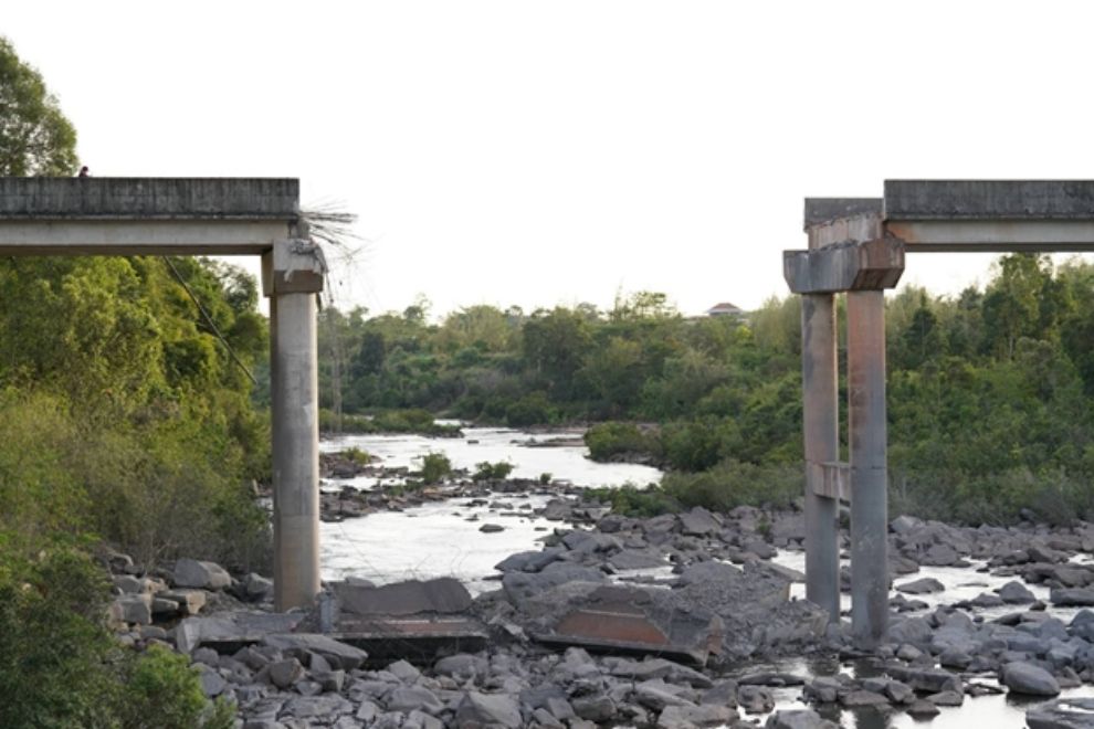 The Chey Chun Neah Bridge, known as the ‘Victory Bridge’, in Pursat province, was destroyed by Thai F-16 fighter jets on December 13. AKP