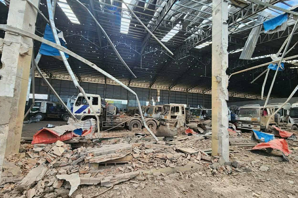 A warehouse in Poipet city in Banteay Meanchey province was destroyed by Thai F-16 fighter jets on December 18. Supplied