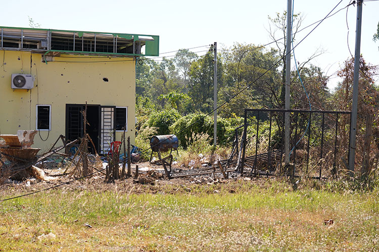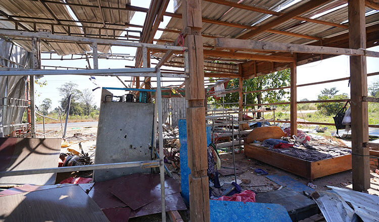 In Konkriel Sangkat, Samraong City, Oddar Meanchey Province, many homes belonging to Cambodian civilians have been almost completely destroyed as a result of shelling and aerial bombardment carried out by invading Thai troops. These are not military bases or fortified positions. They are residential neighborhoods—places where families lived, children studied, and communities existed in peace before being shattered by foreign military force.
