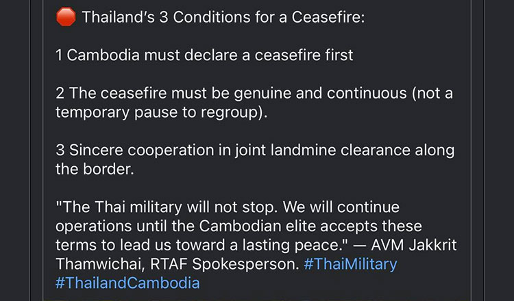A ceasefire that ignores these principles is not a pathway to stability. It is merely a pause without resolution. Cambodia remains ready to engage constructively, provided that commitments are respected and responsibility is clearly acknowledged.