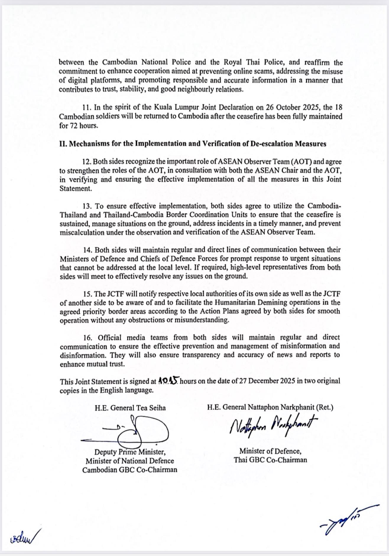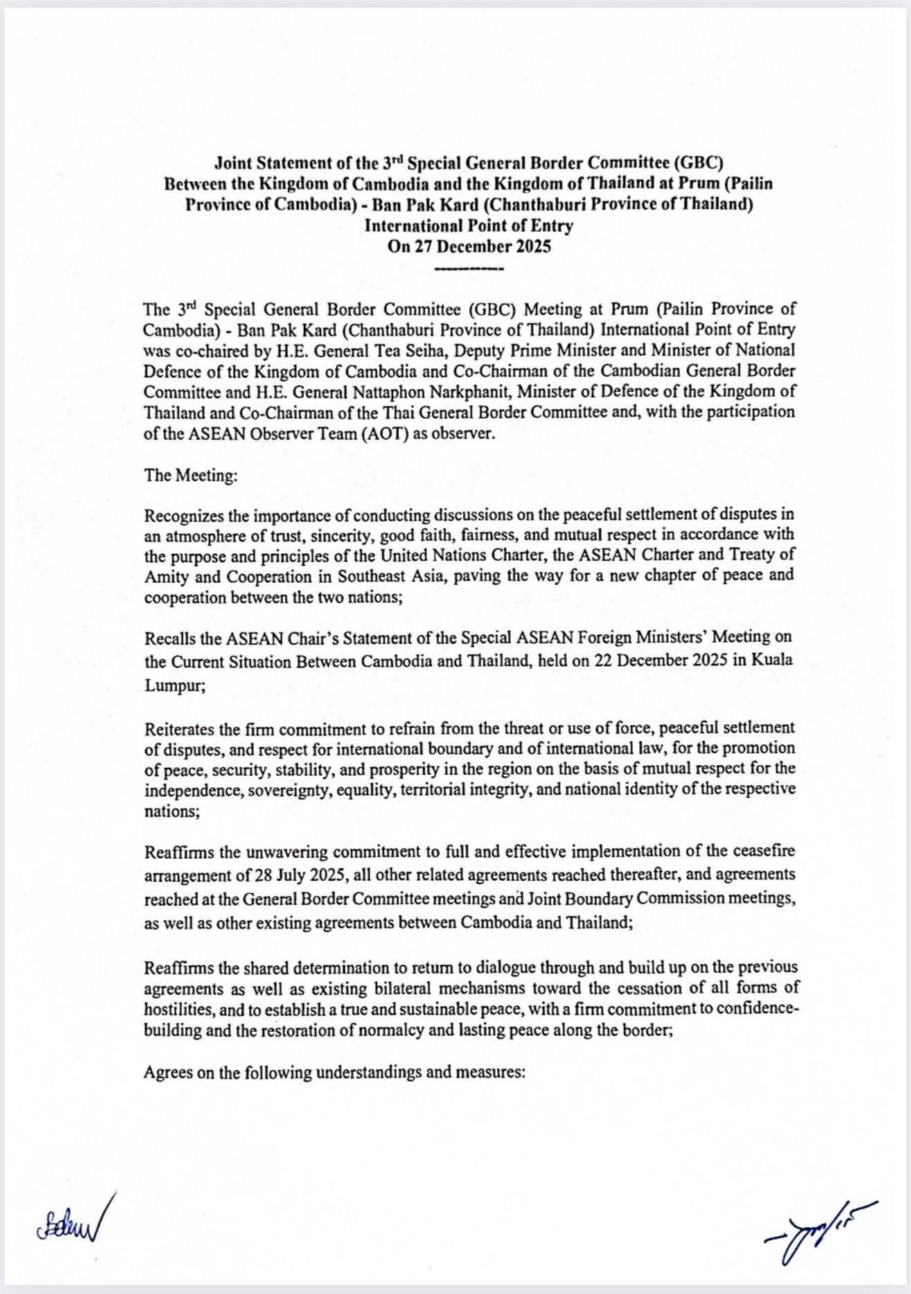 Joint Statement of the 3rd Special General Border Committee (GBC) Between the Kingdom of Cambodia and the Kingdom of Thailand On 27 December 2025