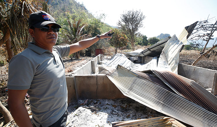 “As you see, the houses were burnt to the ground, our rice and corn were also razed. How can we live?” said Un Thorn, a 70-year-old farmer, pointing to his destroyed home and farmland in Toeuk That village of Angkor Ban commune, Sampov Loun district.