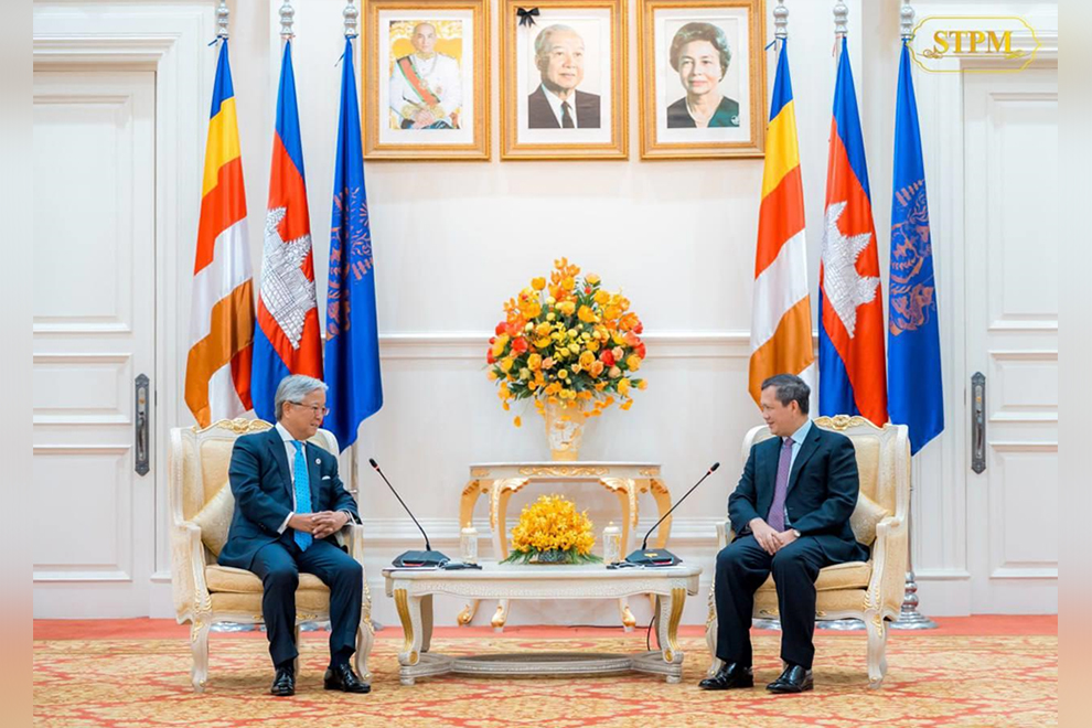 Prime Minister Hun Manet receives a courtesy call from Japanese Ambassador to Cambodia Ueno Atsushi on December 7, 2023 at the Peace Palace.