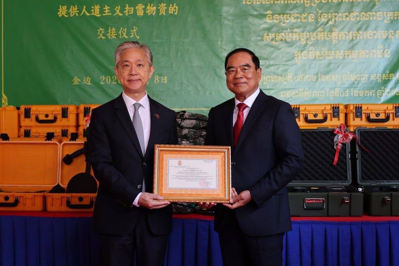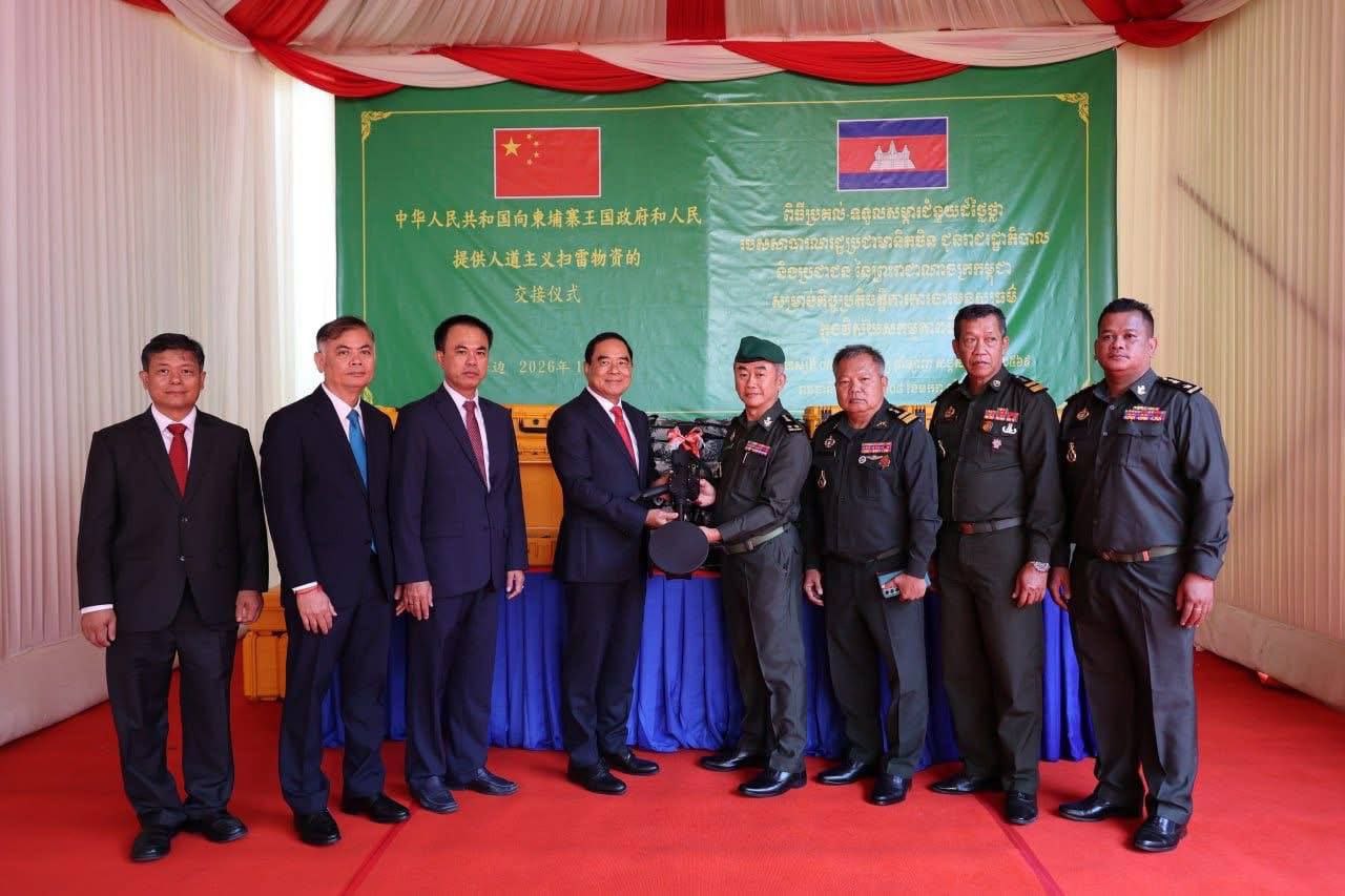 យោងតាមការបង្ហោះផ្សាយនៅបណ្តាញសង្គមរបស់អង្គភាពអាជ្ញាធរមីន នៅថ្ងៃទី០៨ ខែមករា ឆ្នាំ២០២៦ បានឱ្យដឹងថា នៅទីស្នាក់ការអាជ្ញាធរមីន ឯកឧត្តមបណ្ឌិត លី ធុជ ទេសរដ្ឋមន្រ្តី អនុប្រធានទី១ អាជ្ញាធរមីន និង ឯកឧត្តម វ៉ាង វិនពីន ឯកអគ្គរដ្ឋទូតនៃសាធារណរដ្ឋប្រជាមានិតចិន ប្រចាំនៅកម្ពុជា បានអញ្ជើញជាអធិបតីក្នុងពិធីប្រគល់-ទទួលសម្ភារៈដែលជាជំនួយរបស់រដ្ឋាភិបាលនៃសាធារណរដ្ឋប្រជាមានិតចិន សម្រាប់កិច្ចប្រតិបត្តិការការងារមនុស្សធម៌ក្នុងវិស័យសកម្មភាពមីននៅកម្ពុជា។ សម្ភារៈទាំងនោះ រួមមានឧបករណ៍រាវរកលោហៈ ឧបករណ៍និងសម្ភារចាំបាច់ និងរថយន្ត។