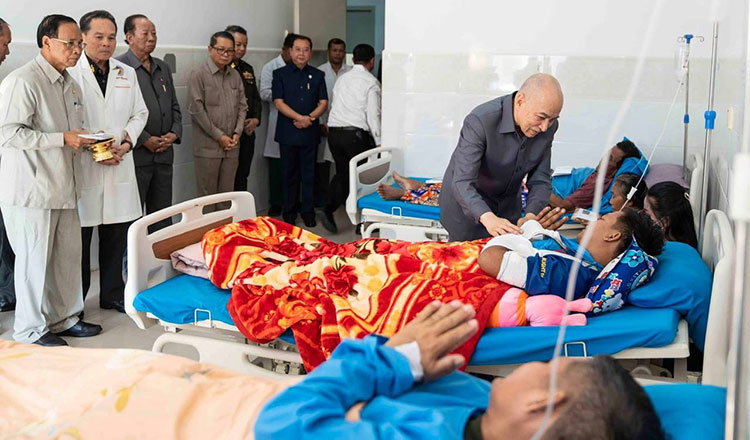 King Norodom Sihamoni on Saturday visited injured soldiers recovering in hospitals in Phnom Penh, including Preah Ket Mealea Hospital and Calmette Hospital, to offer encouragement and support.