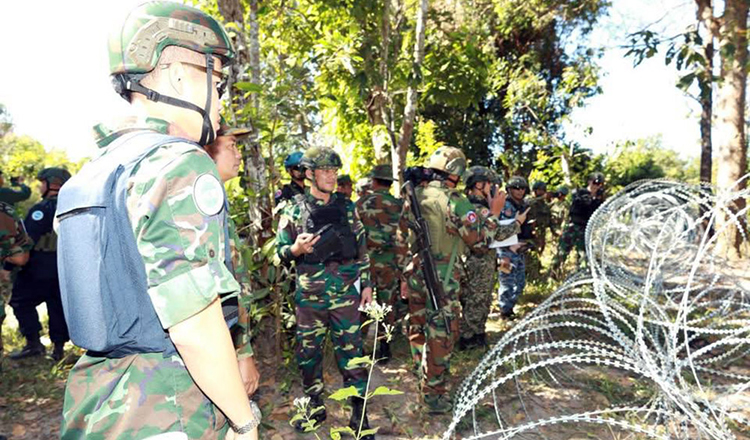 Cambodia’s diplomatic push gathers momentum The ASEAN Observer Team inspects a barbed wire fence laid by Thai troops in Oddar Meanchey province. AKP