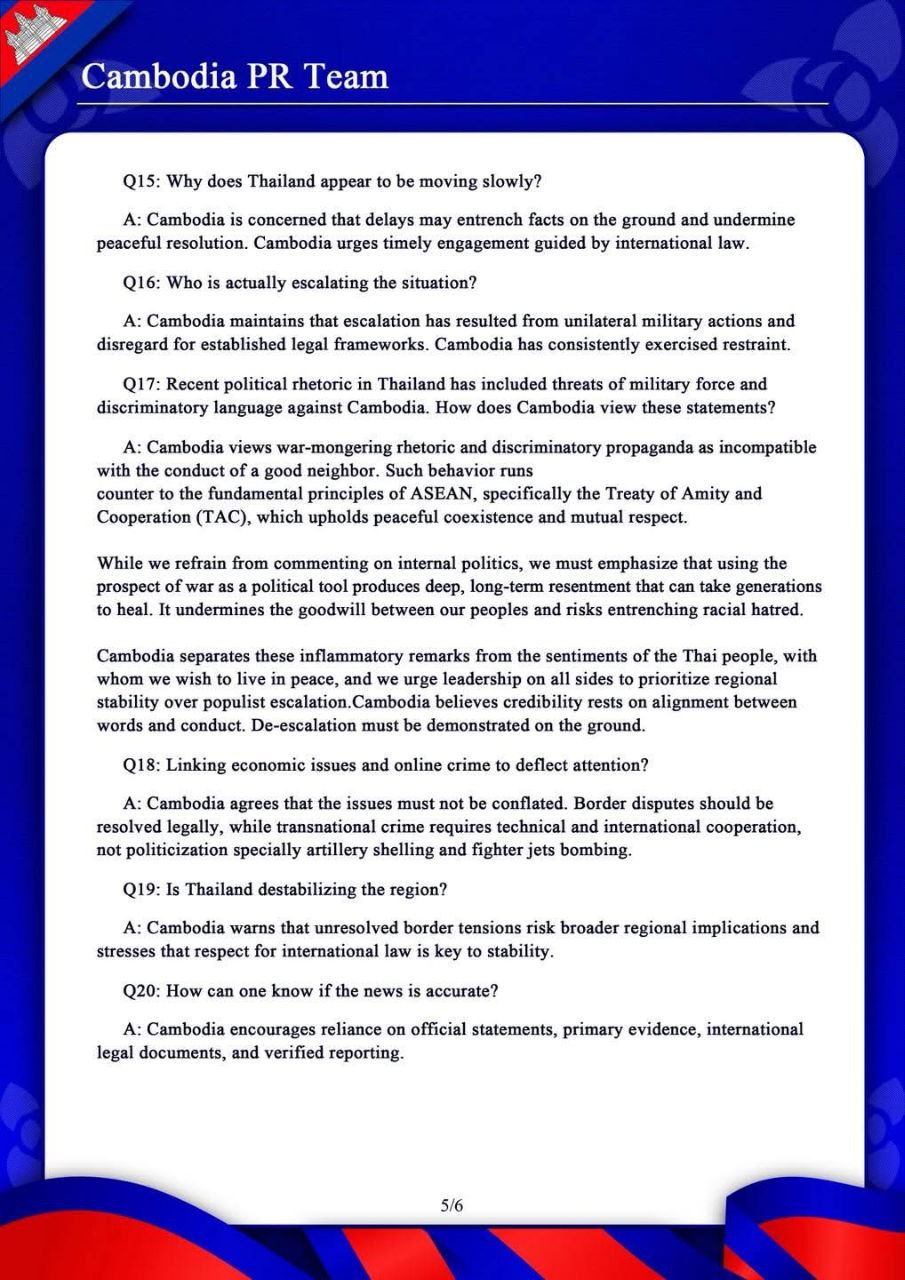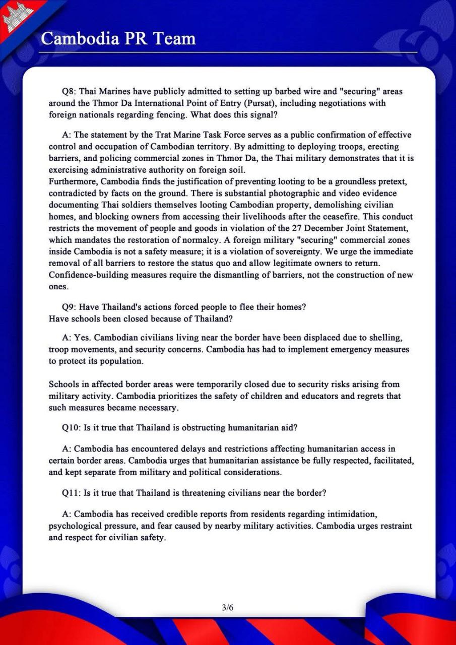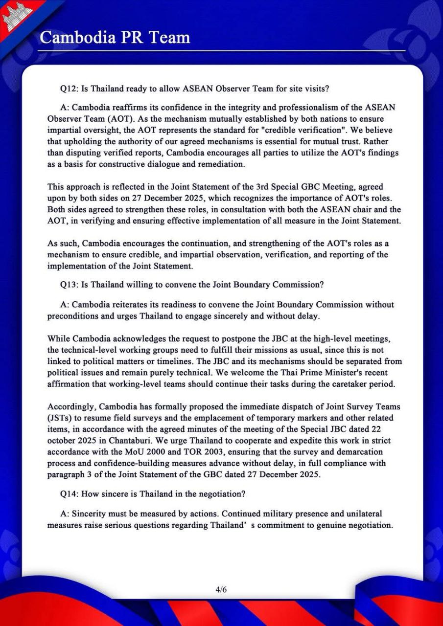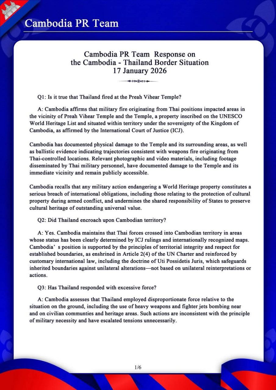 Cambodia PR Team Response on the Cambodia – Thailand Border Situation 17 January 2026