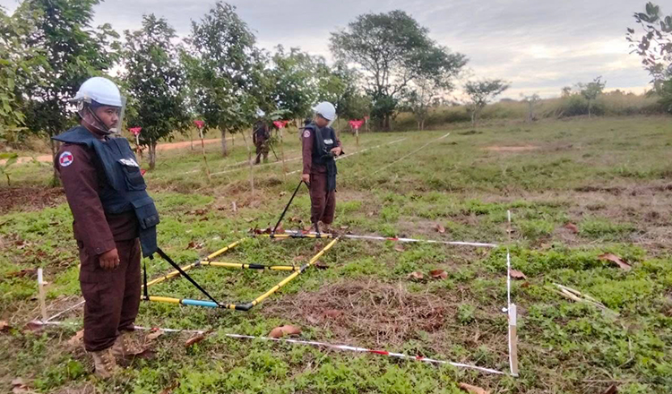 CMAC Director-General Heng Ratana said demining teams are clearing UXO in areas heavily affected by unexploded munitions left behind war at schools and surrounding communities in Pursat, Battambang, Banteay Meanchey, Oddar Meanchey, and Preah Vihear provinces.