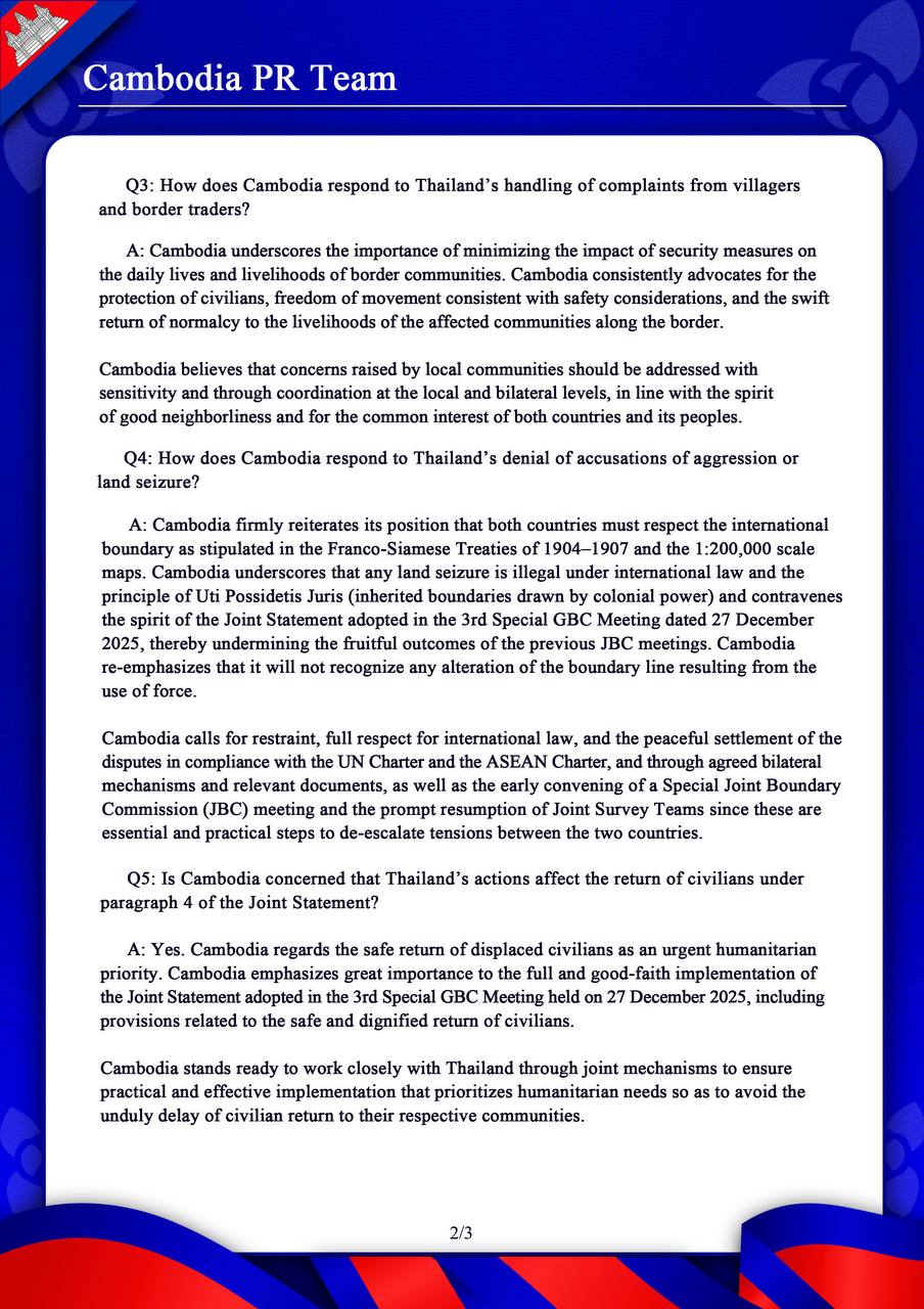 Cambodia PR Team Responses Regarding the Thai Joint Information Center Q&A 19 January 2026