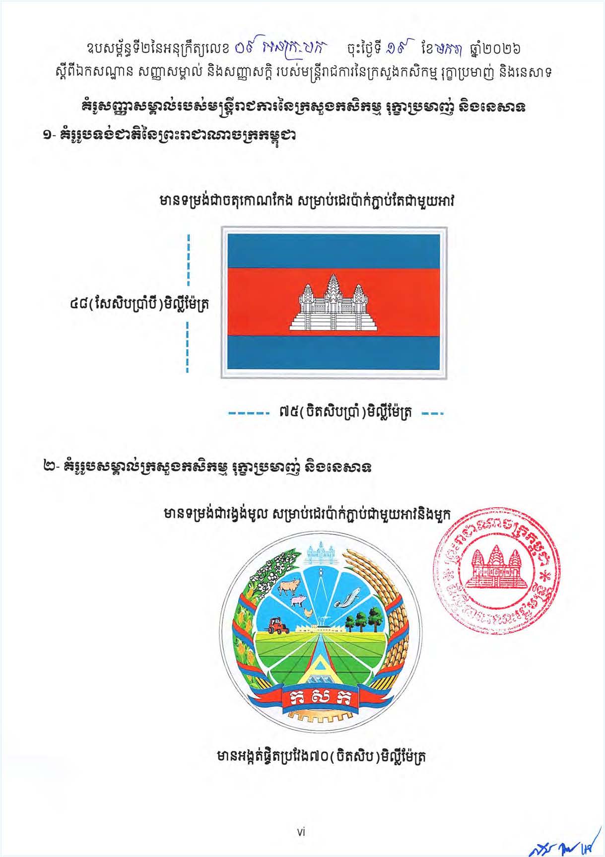 សម្តេចនាយករដ្ឋមន្ត្រី ហ៊ុន ម៉ាណែត ចេញអនុក្រឹត្យ ស្តីពី ឯកសណ្ឋាន សញ្ញាសម្គាល់ និងសញ្ញាសក្តិ របស់មន្ត្រីរាជការនៃក្រសួងកសិកម្ម រុក្ខាប្រមាញ់ និងនេសាទ