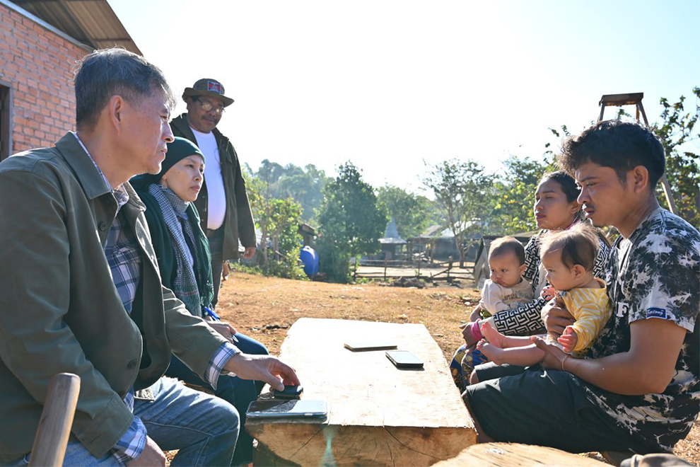 Chhoeum Sanghar, 35, and his wife, Y Sida, 30, are residents of Pongro Village in Oddar Meanchey province, located near the Thai border. The couple has three children: an 11 year old son and seven-month-old twins who were born via caesarean section on June 22, 2025. To escape aerial bombardment by the Thai military, the family fled across the country from the North to the Northeast, eventually settling in Putaing village, Romnea commune, Sen Monorom town, Mondulkiri province on December 20, 2025.