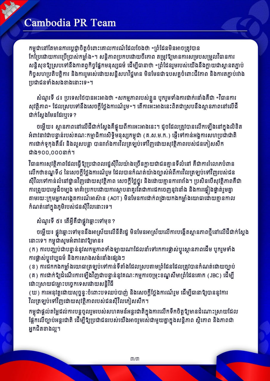 ការឆ្លើយតបរបស់ក្រុមការងារសាធារណមតិកម្ពុជា (Cambodia PR Team) ទាក់ទងនឹងស្ថានភាពជម្លោះព្រំដែនកម្ពុជា-ថៃ ថ្ងៃទី២៩ ខែមករា ឆ្នាំ២០២៦