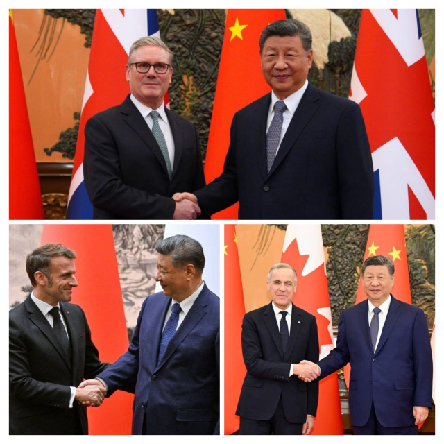 មេដឹកនាំនៃប្រទេសជាសម្ព័ន្ធមិត្តជិតស្និទ្ធមួយចំនួនរបស់សហរដ្ឋអាមេរិកដូចជានាយករដ្ឋមន្ត្រីអង់គ្លេស លោក Keir Starmer និងនាយករដ្ឋមន្ត្រីកាណាដា លោក Mark Carney ព្រមទាំងនាយករដ្ឋមន្ត្រីហ្វាំងឡង់ លោក Petteri Orpo បានបំពេញទស្សនកិច្ចទៅកាន់ទីក្រុងប៉េកាំង ជួបលោក ស៊ី ជីនពីងកាលពីខែមករា។ ប្រធានាធិបតីបារាំង លោក អេម៉ានុយអែល ម៉ាក្រុង ក៏បានបំពេញទស្សនកិច្ចទៅកាន់ប៉េកាំងផងដែរ កាលពី ខែធ្នូកន្លងទៅ ខណៈអធិការបតីអាល្លឺម៉ង់ លោក Friedrich Merz ត្រូវបានរំពឹងថានឹងធ្វើទស្សនកិច្ចទៅចិនឆាប់ៗ។ សម្រាប់ចិន ដំណើរទស្សនកិច្ចទាំងនេះជាសញ្ញាមួយបង្ហាញថាយុគសម័យមួយនៃការជជែកពី ការកាត់ផ្ដាច់ទំនាក់ទំនងសេដ្ឋកិច្ចចេញពីចិន​កំពុងថមថយសន្ទុះ ហើយមេដឹកនាំលោកខាងលិចនៅចុងបញ្ចប់នៅតែសម្លឹងឃើញចិនជាដៃគូមួយគួរឱ្យទុកចិត្តបាន ផ្ទុយពីសហរដ្ឋអាមេរិកនៅក្រោមការដឹកនាំរបស់លោក ដូណាល់ ត្រាំ។