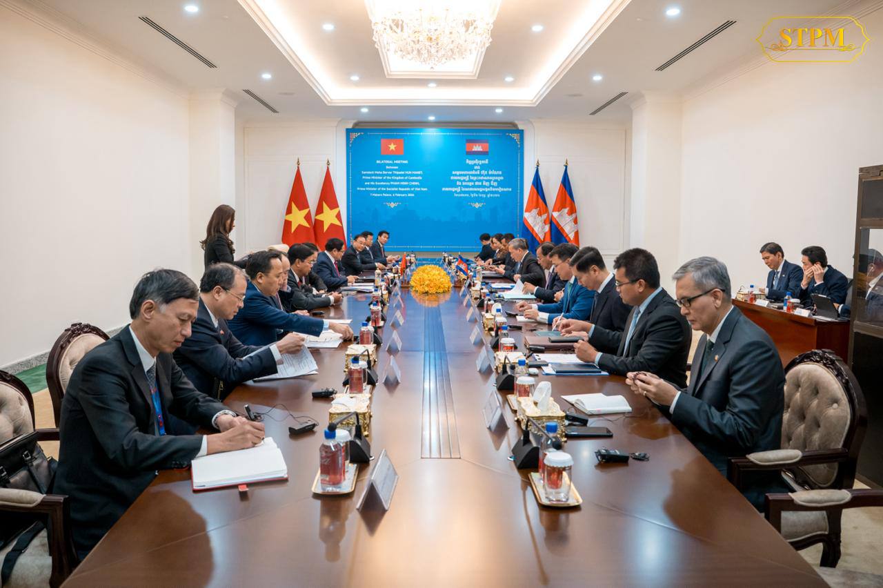 នារសៀលថ្ងៃទី០៦ ខែកុម្ភៈ ឆ្នាំ២០២៦, សម្តេចមហាបវរធិបតី ហ៊ុន ម៉ាណែត នាយករដ្ឋមន្រ្តី នៃព្រះរាជាណាចក្រកម្ពុជា បានទទួលជួបពិភាក្សាការងារជាមួយ ឯកឧត្តម ផាម មិញជិញ (PHAM Minh Chinh) នាយករដ្ឋមន្ត្រី នៃសាធារណរដ្ឋសង្គមនិយមវៀតណាម នៅវិមាន៧មករា ក្នុងឱកាសដែលឯកឧត្តមនាយករដ្ឋមន្ត្រីវៀតណាម បានអញ្ជើញចូលរួមកិច្ចប្រជុំរវាងថ្នាក់ដឹកនាំគណបក្សប្រជាជនកម្ពុជា, ថ្នាក់ដឹកនាំគណបក្សកុម្មុយនីស្តវៀតណាម និងថ្នាក់ដឹកនាំគណបក្សប្រជាជនបដិវត្តន៍ឡាវ នៅរាជធានីភ្នំពេញ ព្រះរាជាណាចក្រកម្ពុជា ពីថ្ងៃទី៦ដល់ថ្ងៃទី៧ ខែកុម្ភៈ ឆ្នាំ២០២៦។