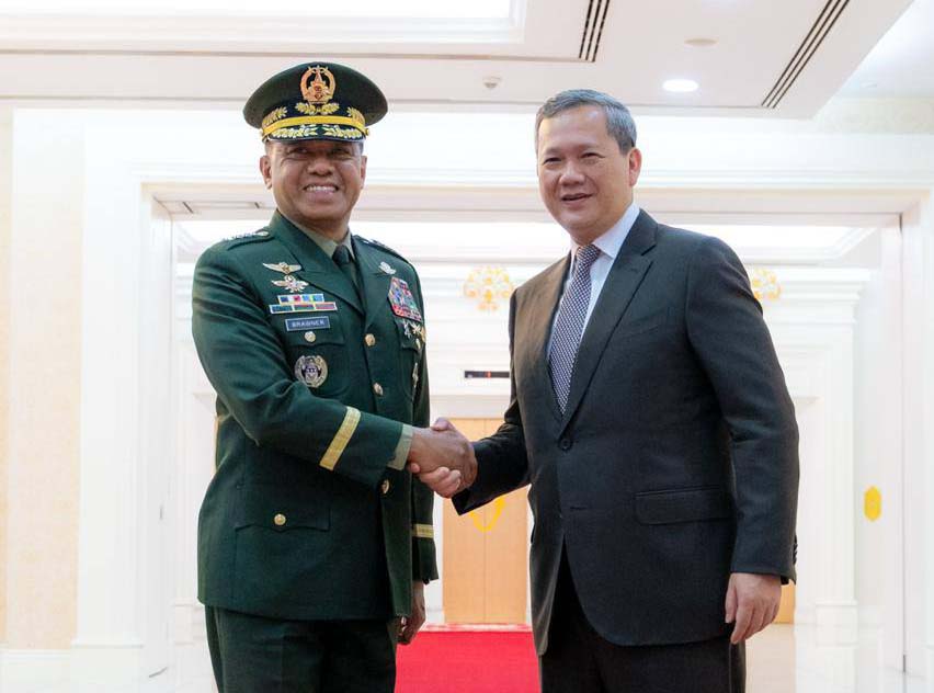នាព្រឹកថ្ងៃទី១២ ខែកុម្ភៈ ឆ្នាំ២០២៦, សម្ដេចមហាបវរធិបតី ហ៊ុន ម៉ាណែត នាយករដ្ឋមន្ត្រី នៃព្រះរាជាណាចក្រកម្ពុជា បានអនុញ្ញាតឱ្យឯកឧត្តម នាយឧត្តមសេនីយ៍ Romeo S. Brawner Jr. អគ្គមេបញ្ជាការកងទ័ពហ្វីលីពីន ចូលជួបសម្ដែងការគួរសម និងពិភាក្សាការងារ នៅវិមានសន្ដិភាព។