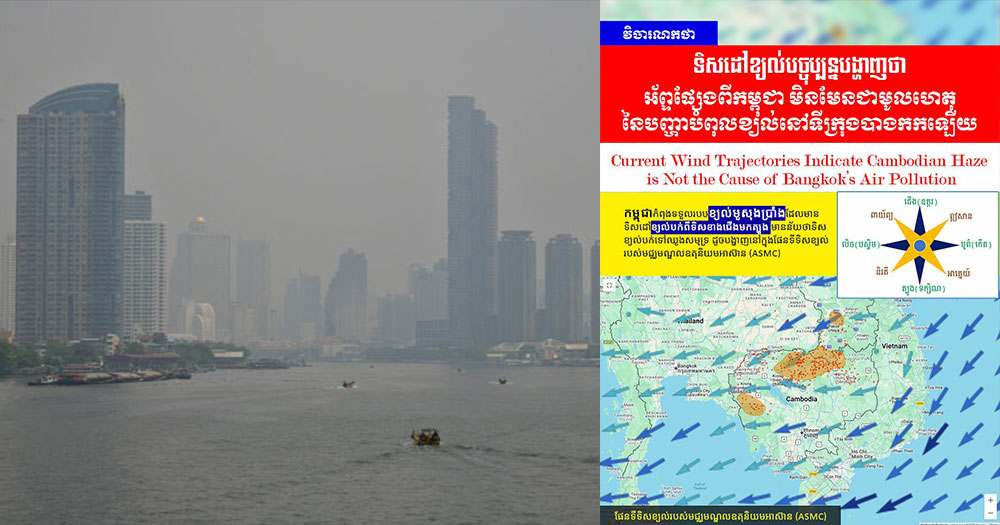 វិចារណកថា៖ ទិសដៅខ្យល់បច្ចុប្បន្ន បង្ហាញថា អ័ព្ទផ្សែងពីកម្ពុជា មិនមែនជាមូលហេតុ​នៃបញ្ហាបំពុលខ្យល់នៅក្រុងបាងកកនោះឡើយ វិចារណកថា៖ ទិសដៅខ្យល់បច្ចុប្បន្ន បង្ហាញថា អ័ព្ទផ្សែងពីកម្ពុជា មិនមែនជាមូលហេតុ​នៃបញ្ហាបំពុលខ្យល់នៅក្រុងបាងកកនោះឡើយ