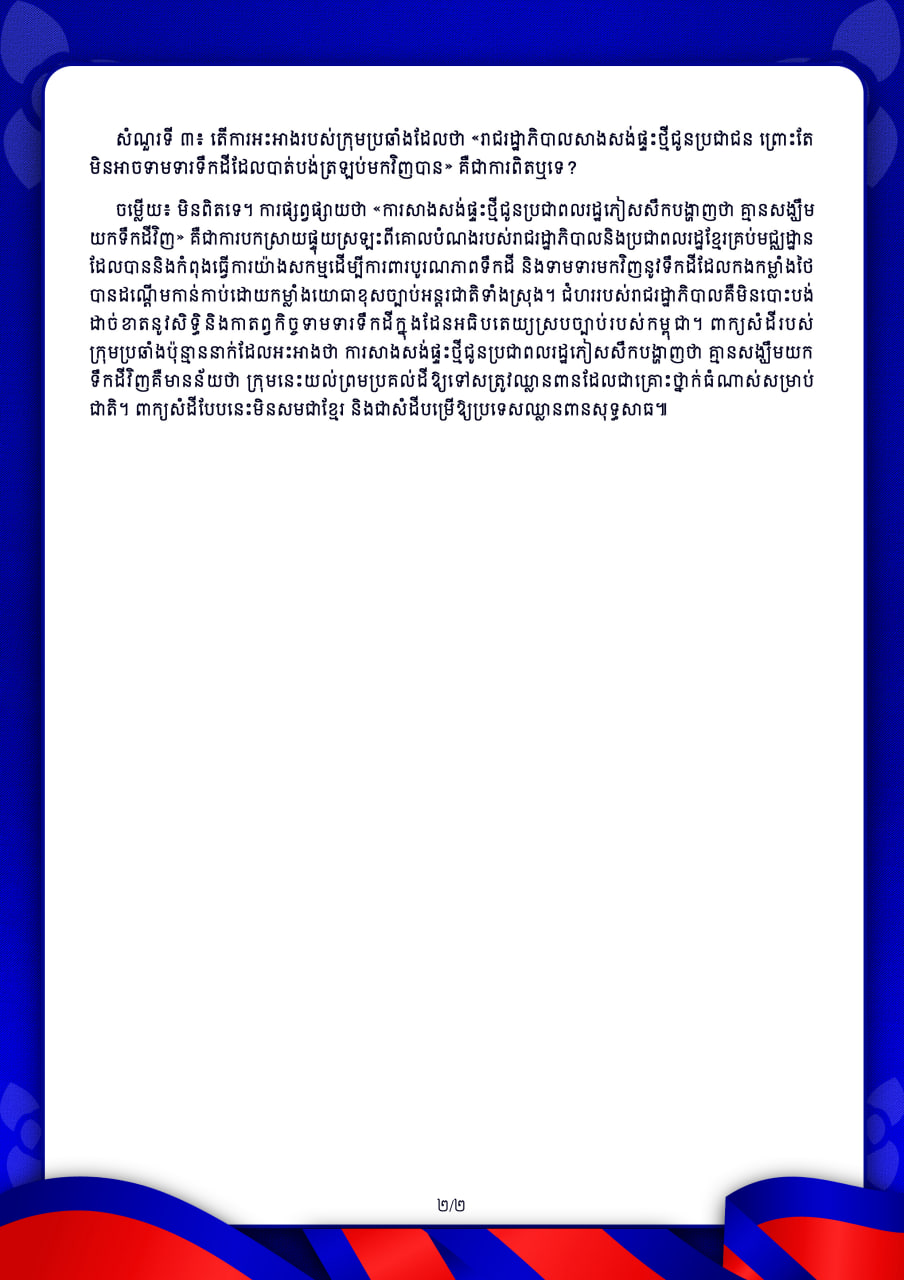 ការឆ្លើយតបរបស់ក្រុមការងារសាធារណមតិកម្ពុជា (Cambodia PR Team) ទាក់ទងនឹងការចោទប្រកាន់របស់ក្រុមប្រឆាំងជុំវិញវិធានការរៀបចំលំនៅដ្ឋានសុវត្ថិភាពជូនប្រជាពលរដ្ឋភៀសសឹក ថ្ងៃទី១៦ ខែកុម្ភៈ ឆ្នាំ២០២៦