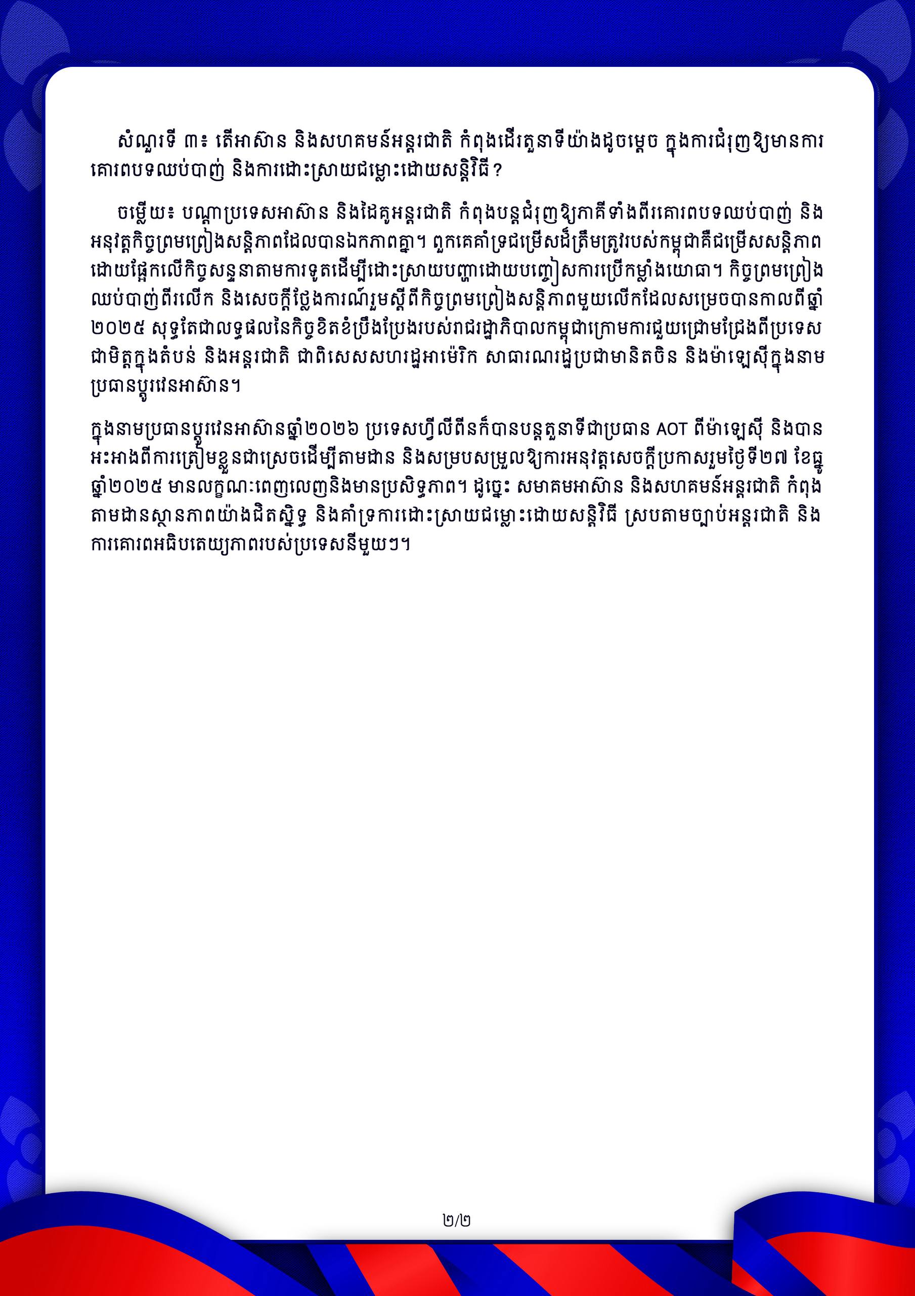 ការឆ្លើយតបរបស់ក្រុមការងារសាធារណមតិកម្ពុជា (Cambodia PR Team) ទាក់ទងនឹងជំហររបស់រាជរដ្ឋាភិបាលចំពោះការឈ្លានពាន របស់យោធាថៃមកលើទឹកដីកម្ពុជា ថ្ងៃទី១២ ខែកុម្ភៈ ឆ្នាំ២០២៦