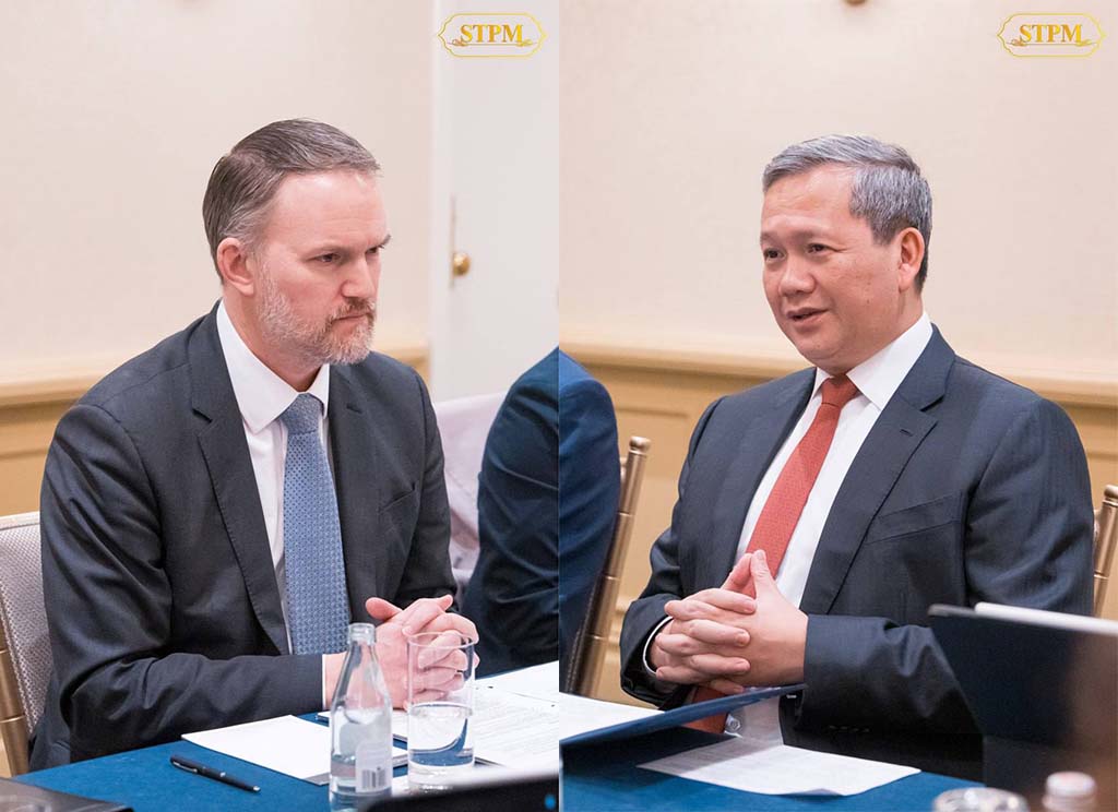 នារសៀលថ្ងៃទី១៨ ខែកុម្ភៈ ឆ្នាំ២០២៦, សម្ដេចមហាបវរធិបតី ហ៊ុន ម៉ាណែត នាយករដ្ឋមន្ត្រី នៃព្រះរាជាណាចក្រកម្ពុជា បានជួបពិភាក្សាការងារជាមួយ ឯកឧត្ដមឯកអគ្គរដ្ឋទូត Jamieson Greer តំណាងពាណិជ្ជកម្មសហរដ្ឋអាម៉េរិក ក្នុងឱកាសនៃការដឹកនាំគណៈប្រតិភូរាជរដ្ឋាភិបាលកម្ពុជាចូលរួមកិច្ចប្រជុំលើកដំបូងនៃក្រុមប្រឹក្សាសន្តិភាព (Board of Peace) នៅរដ្ឋធានីវ៉ាស៊ីនតោន សហរដ្ឋអាម៉េរិក។